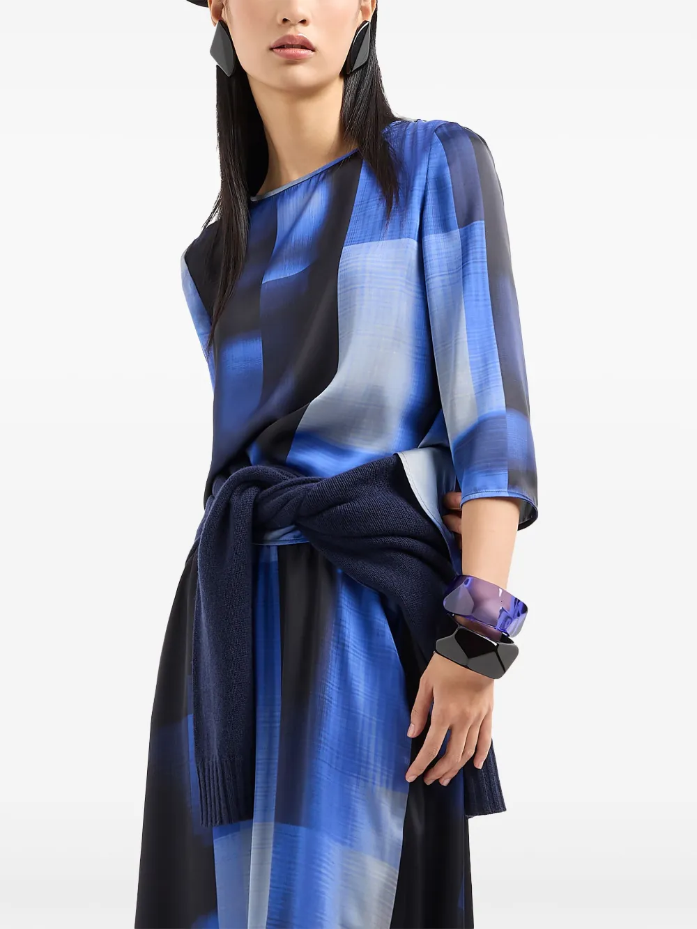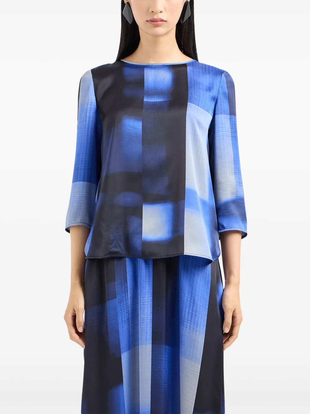 Блузка в стиле колор-блок EMPORIO ARMANI, синий