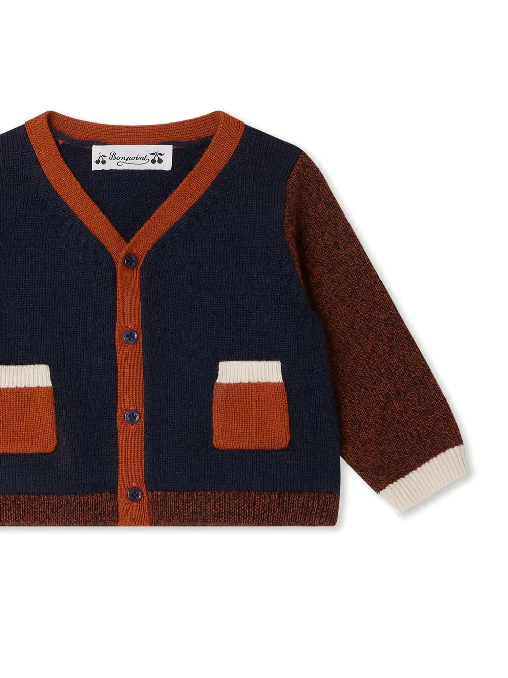 Кардиган Tahiel в стиле колор-блок Bonpoint, синий