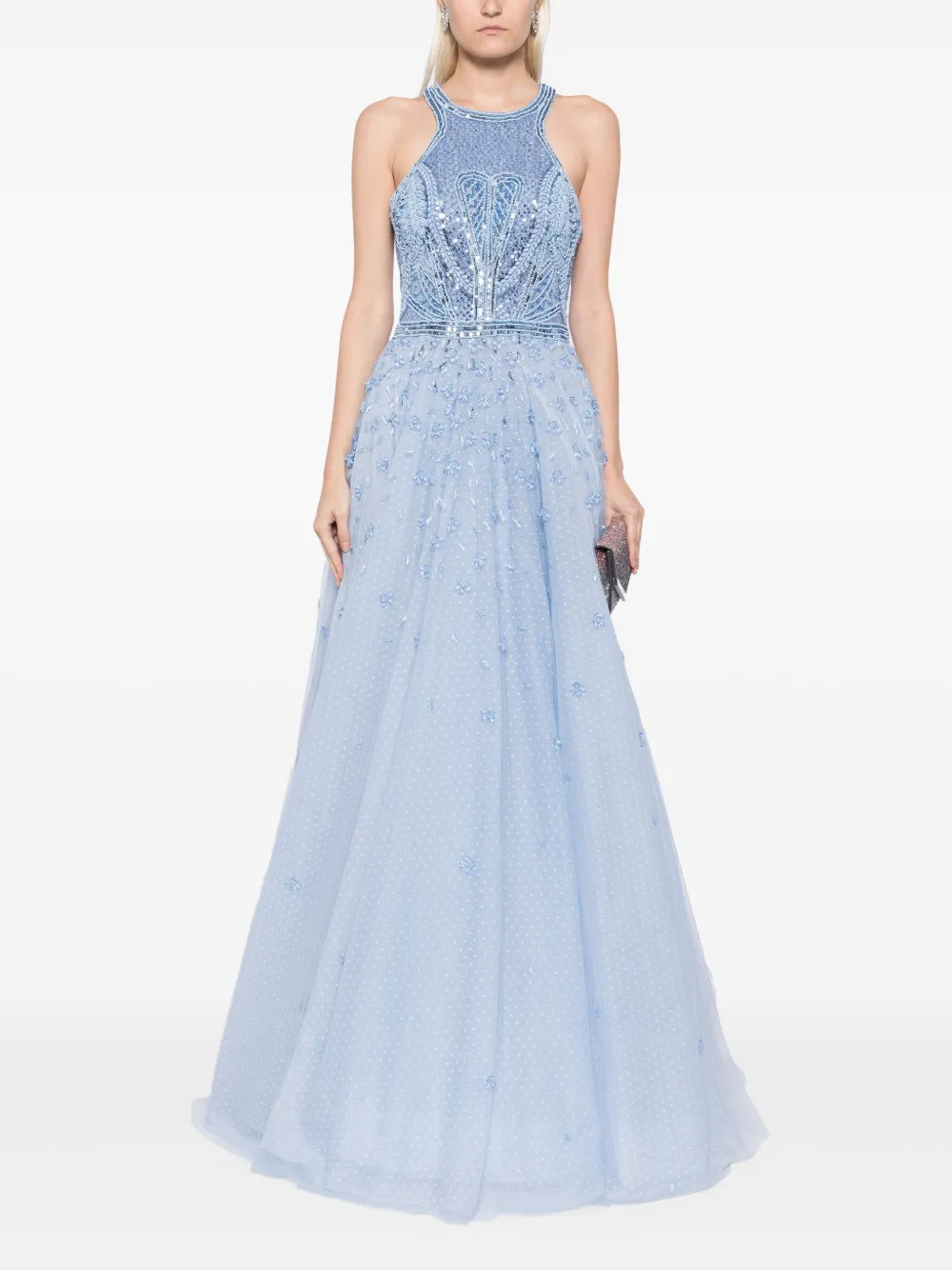 Вечернее платье с вырезом халтер и бисером Saiid Kobeisy, синий