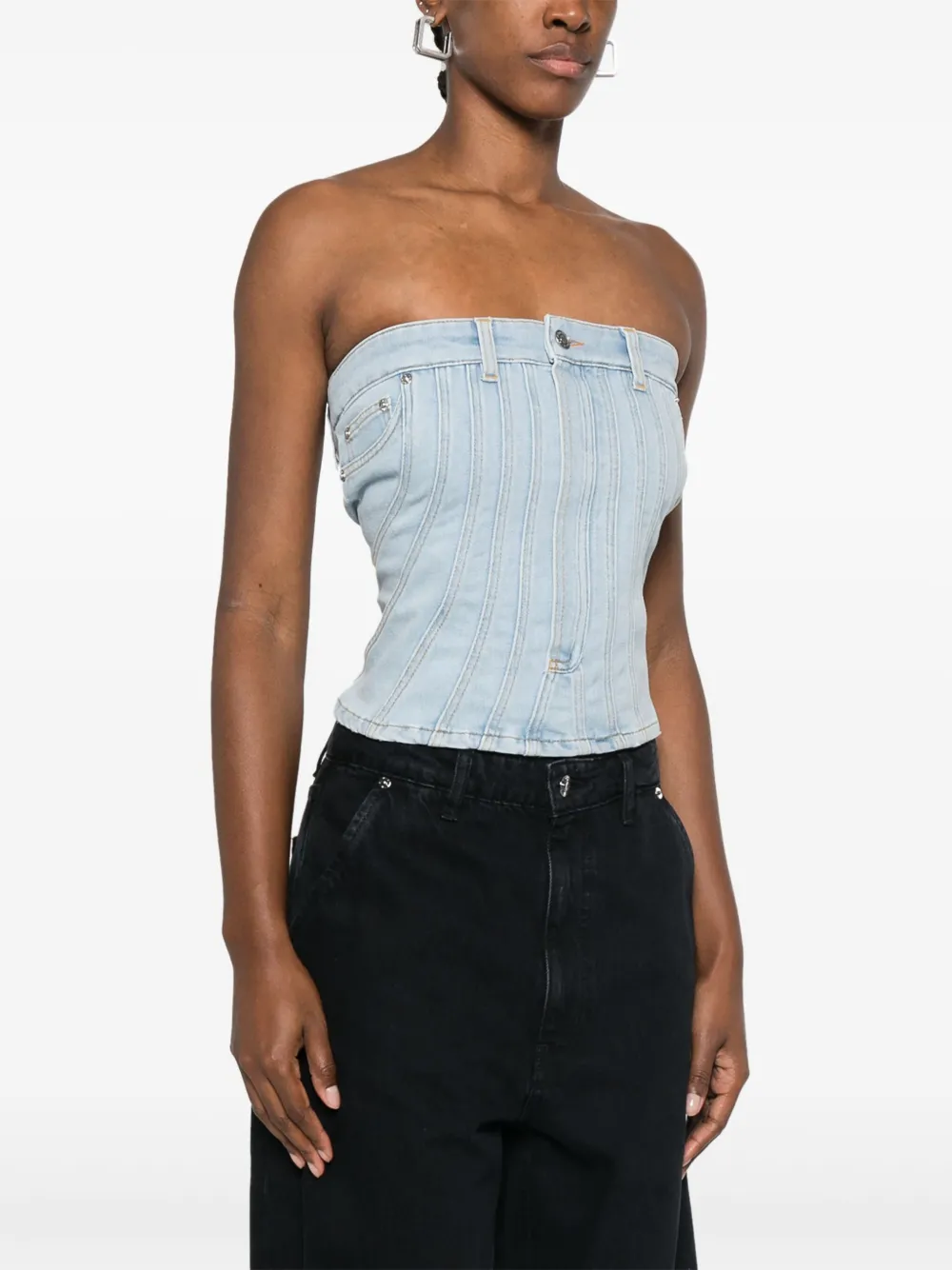 Джинсовый топ с декоративной строчкой Mugler, синий