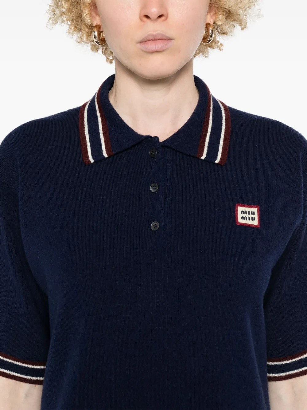 Платье мини с нашивкой-логотипом MIU MIU, синий