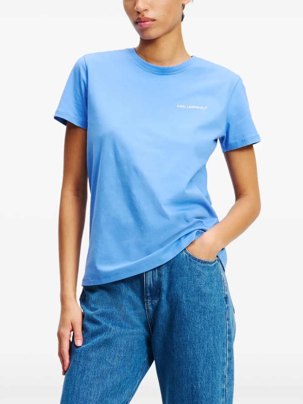 Футболка с вышитым логотипом KARL LAGERFELD, синий