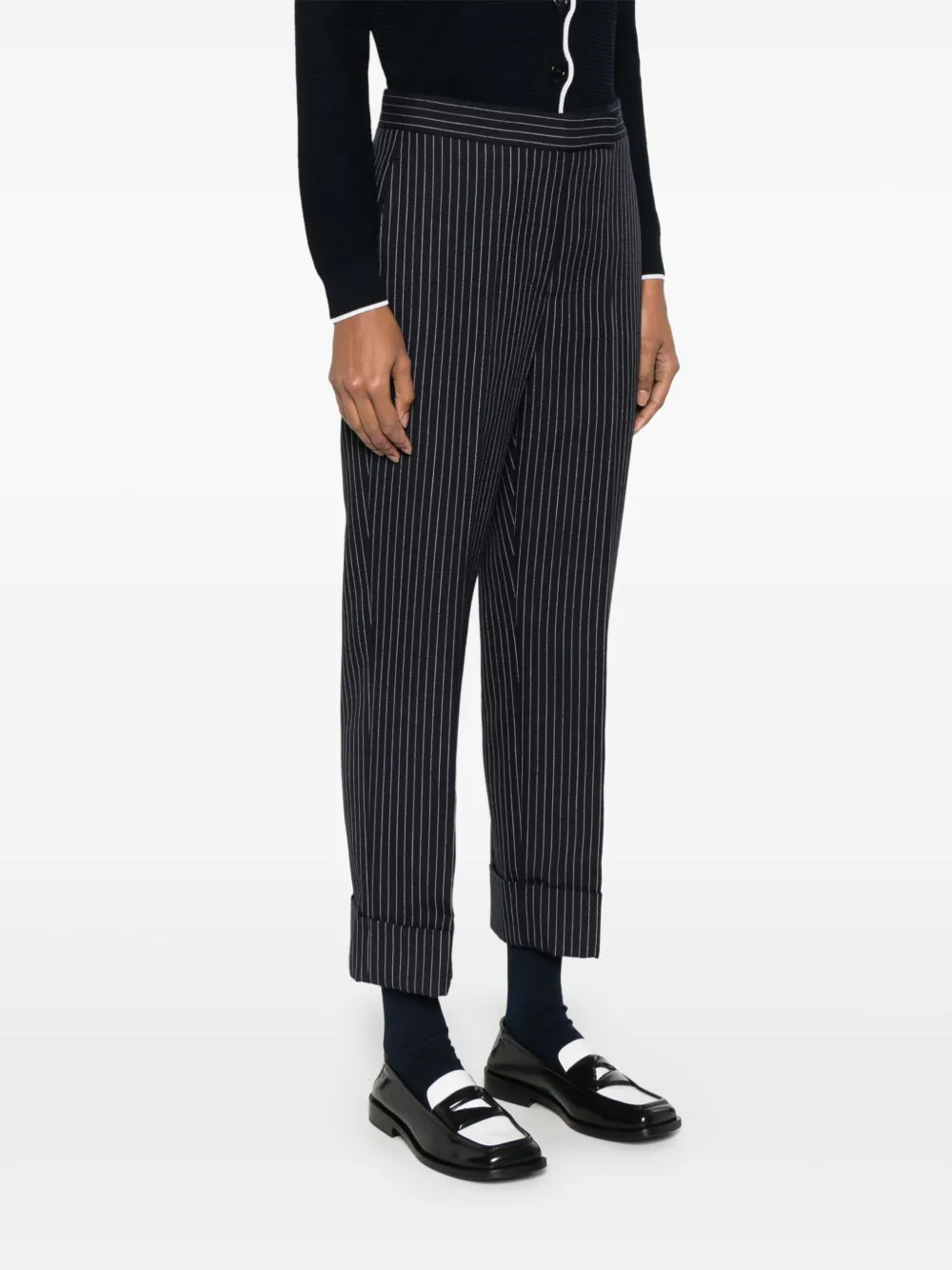 Брюки в тонкую полоску THOM BROWNE, синий