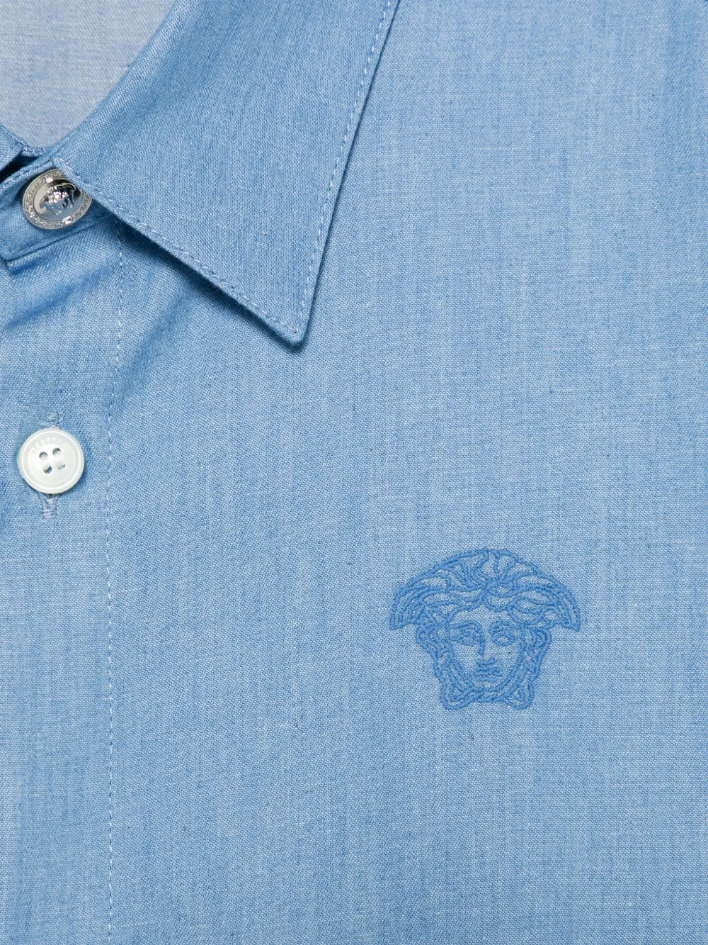 Рубашка с вышивкой Medusa Versace Kids, синий