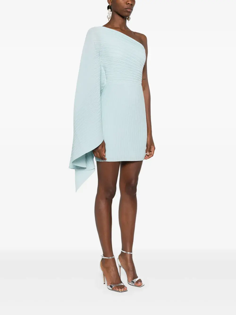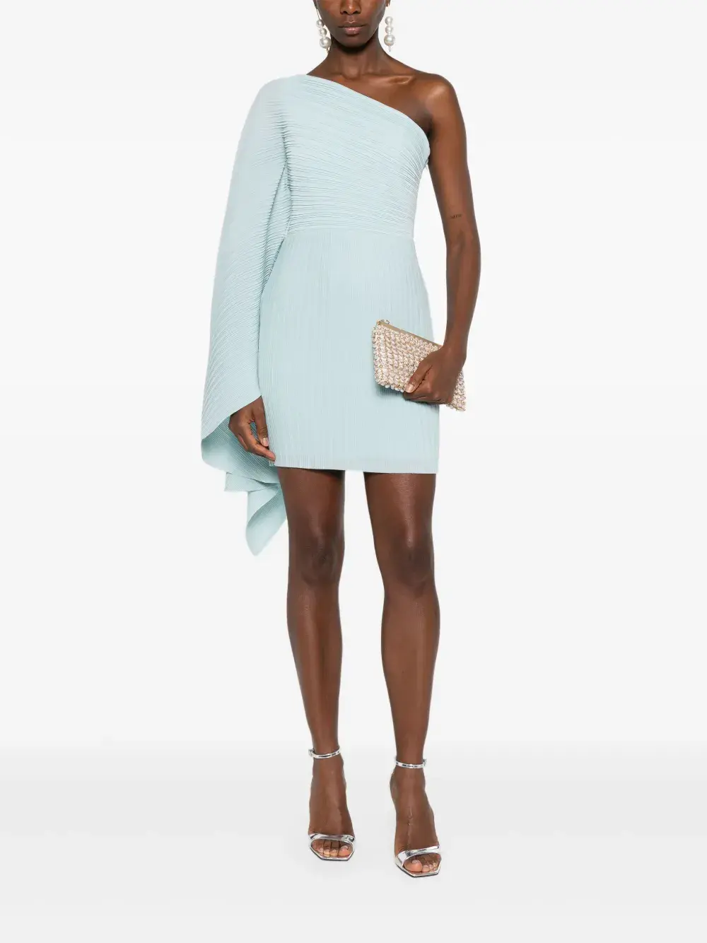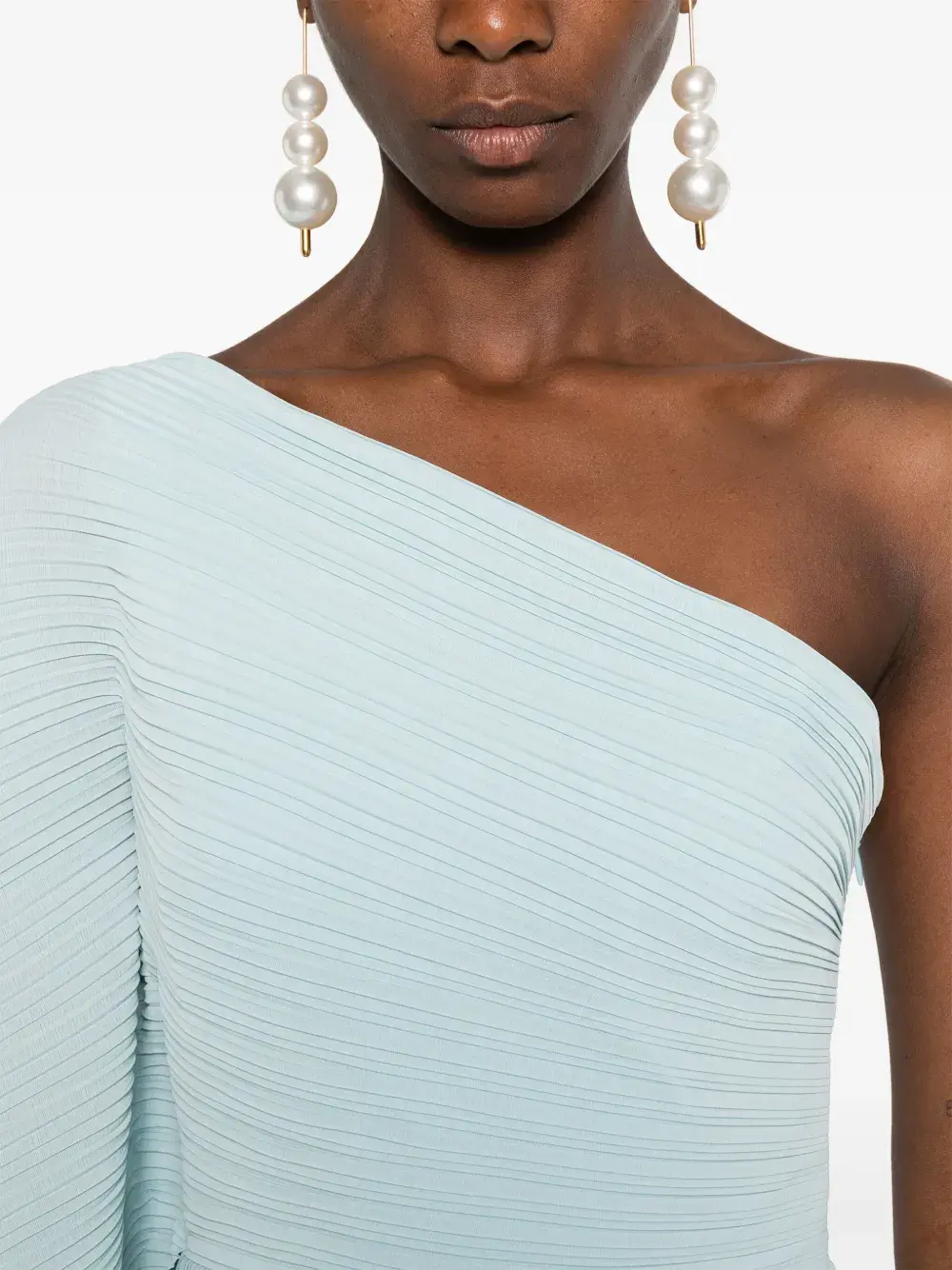 Светло-голубая потайная застежка-молния сзади, асимметричный вырез, длинный рукав, плиссированные детали