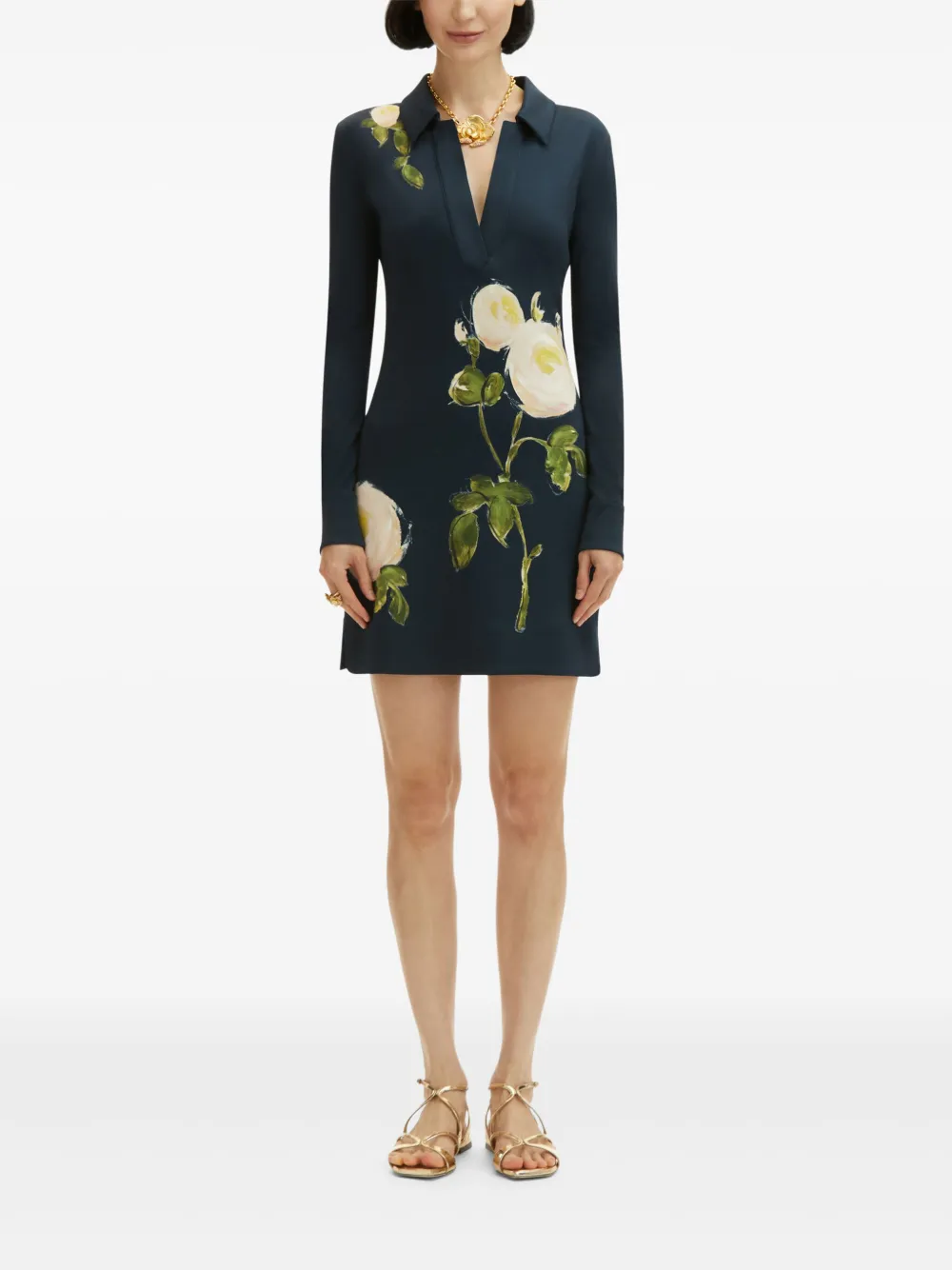 Платье мини из джерси с принтом Oscar de la Renta, синий