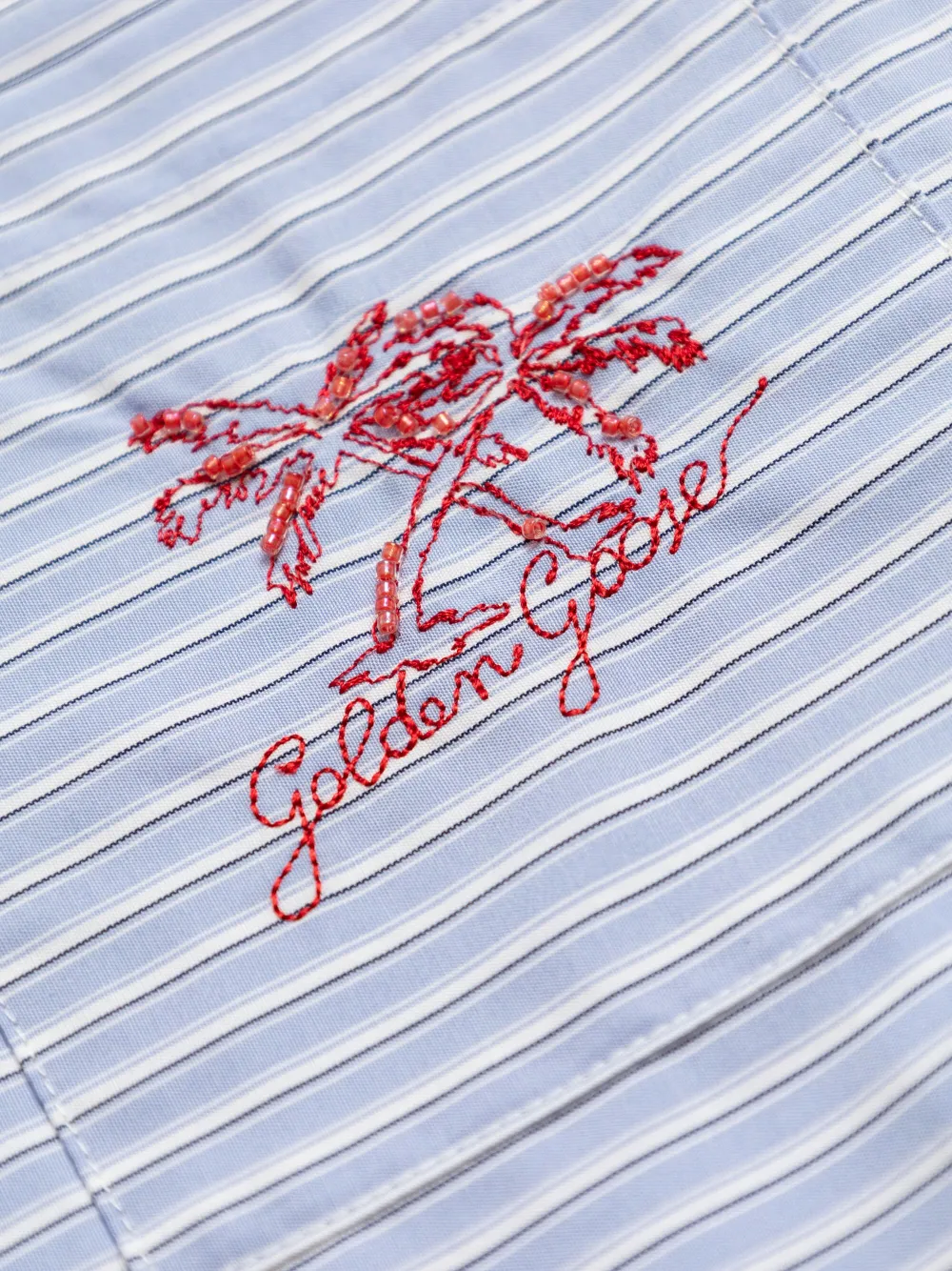 Укороченная рубашка в полоску Golden Goose Kids, синий