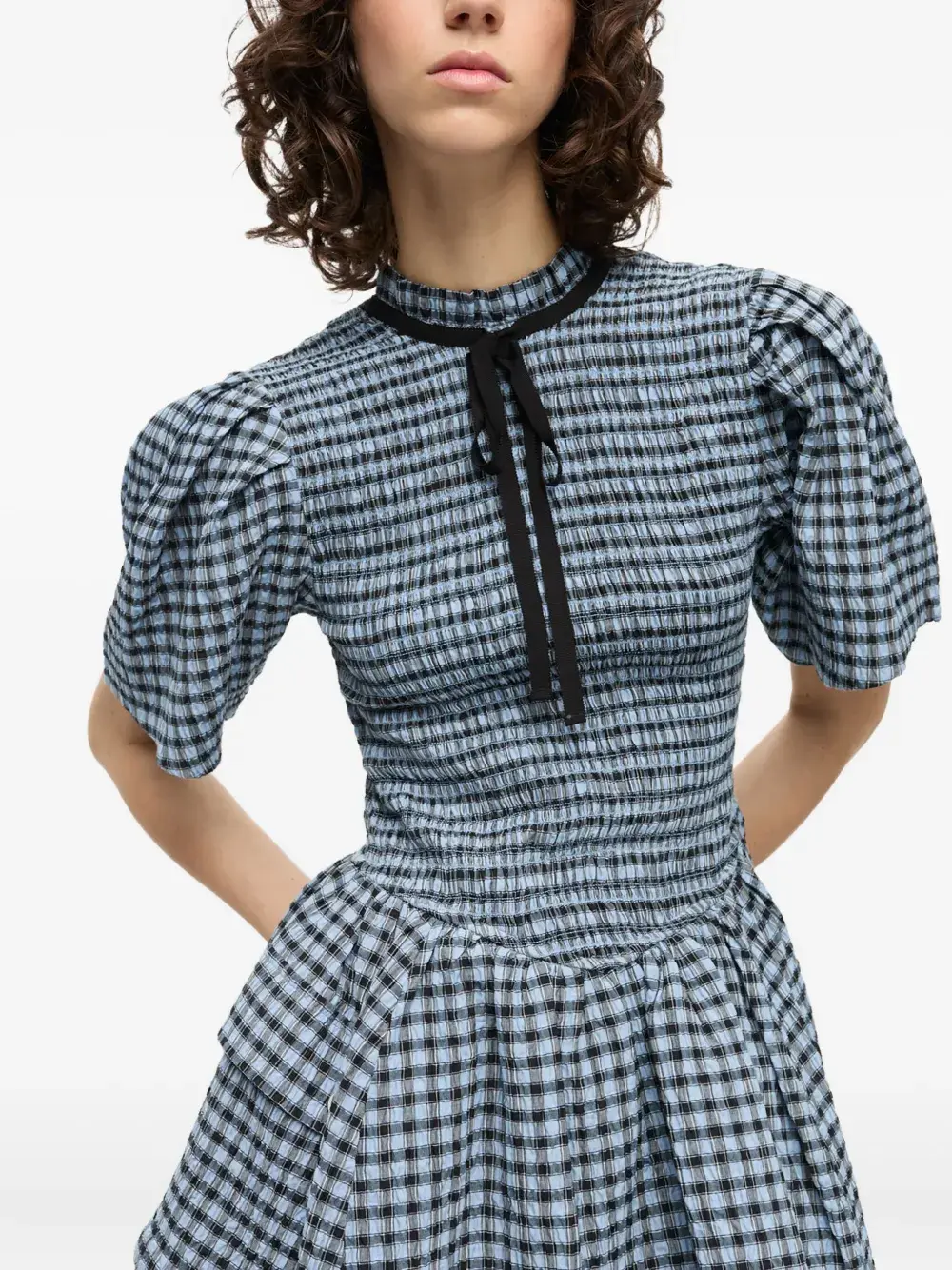 Платье мини в клетку GANNI, синий