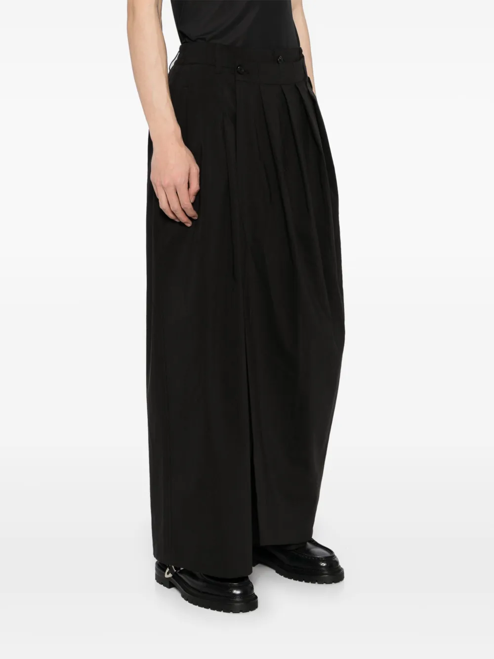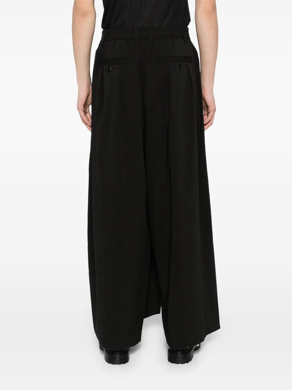 Черная застежка на молнию и пуговицы спереди, два боковых врезных кармана, задние карманы на пуговицах