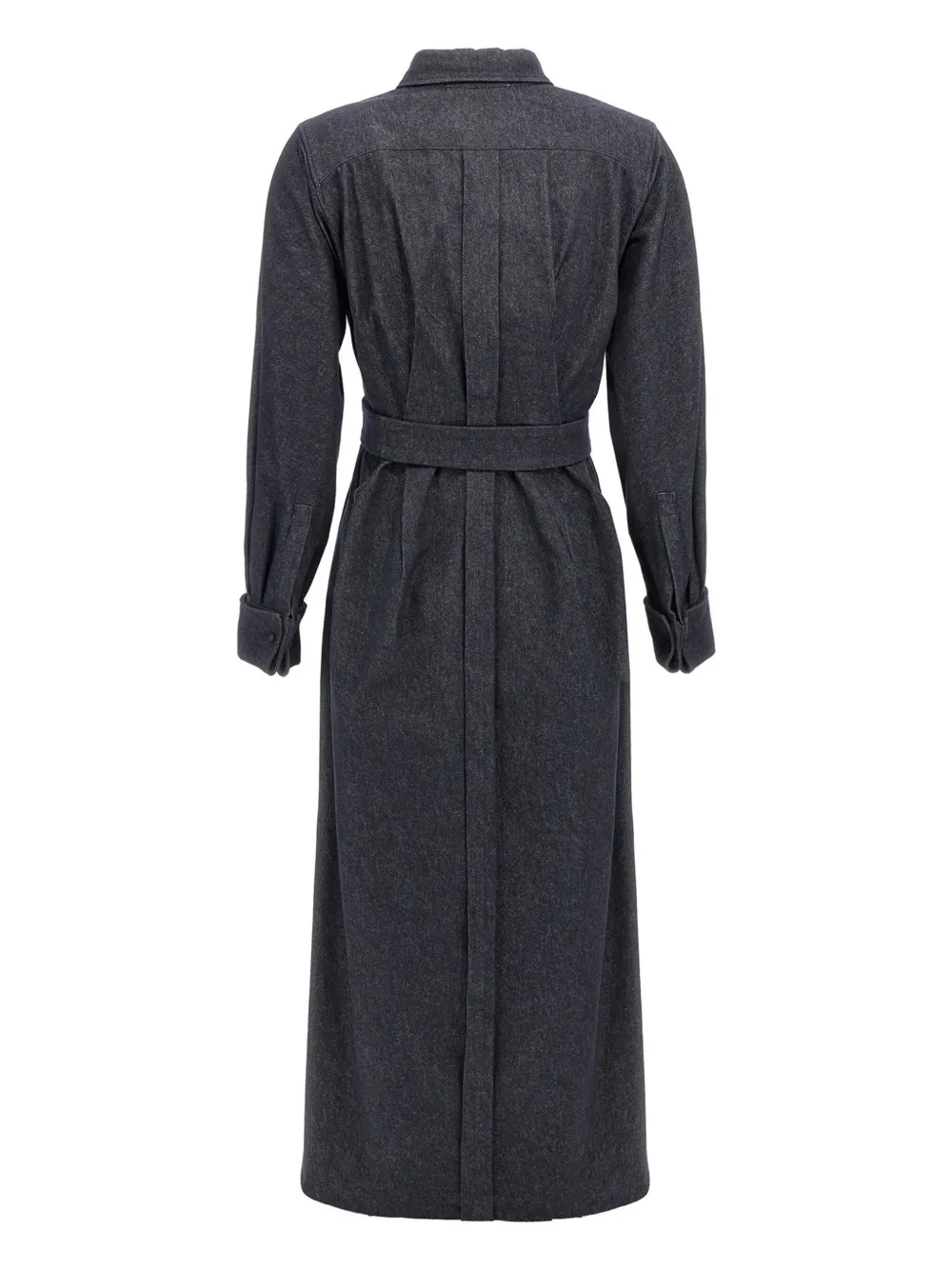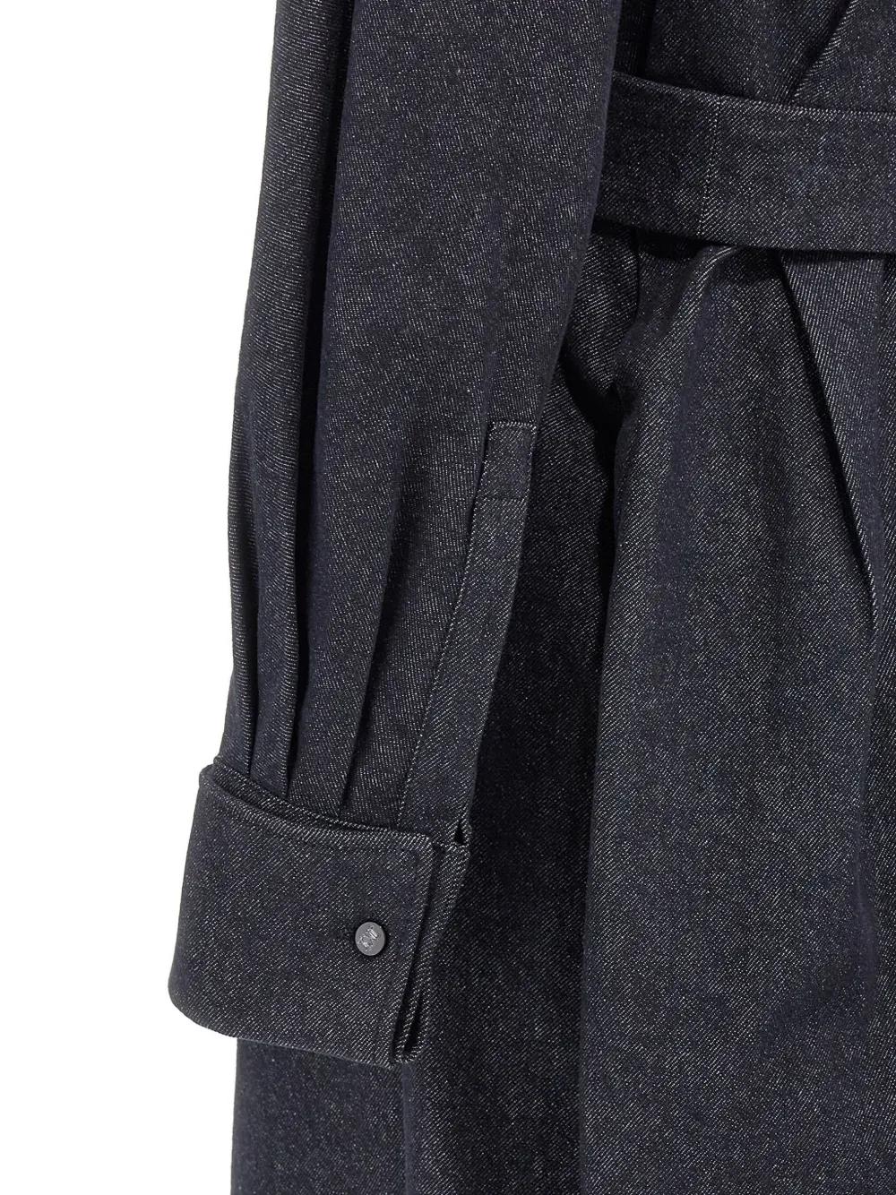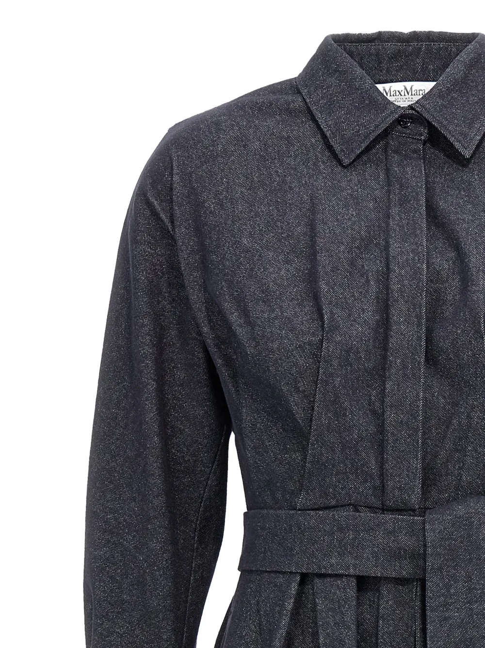 Синяя потайная застежка спереди, пояс на талии, длинные рукава, застегивающиеся на пуговицы манжеты