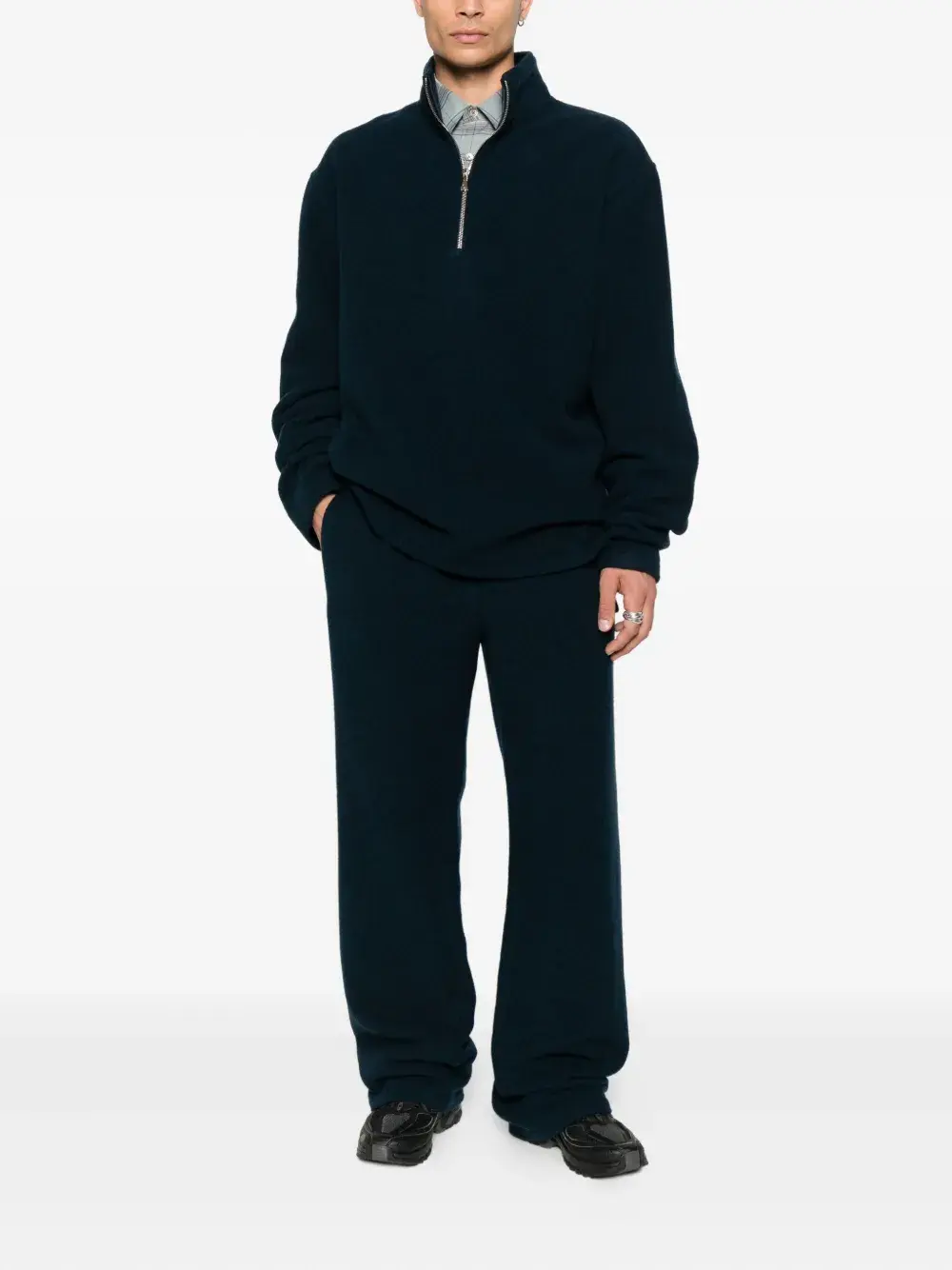 Синий натуральная шерсть, эластичный пояс, задний накладной карман
