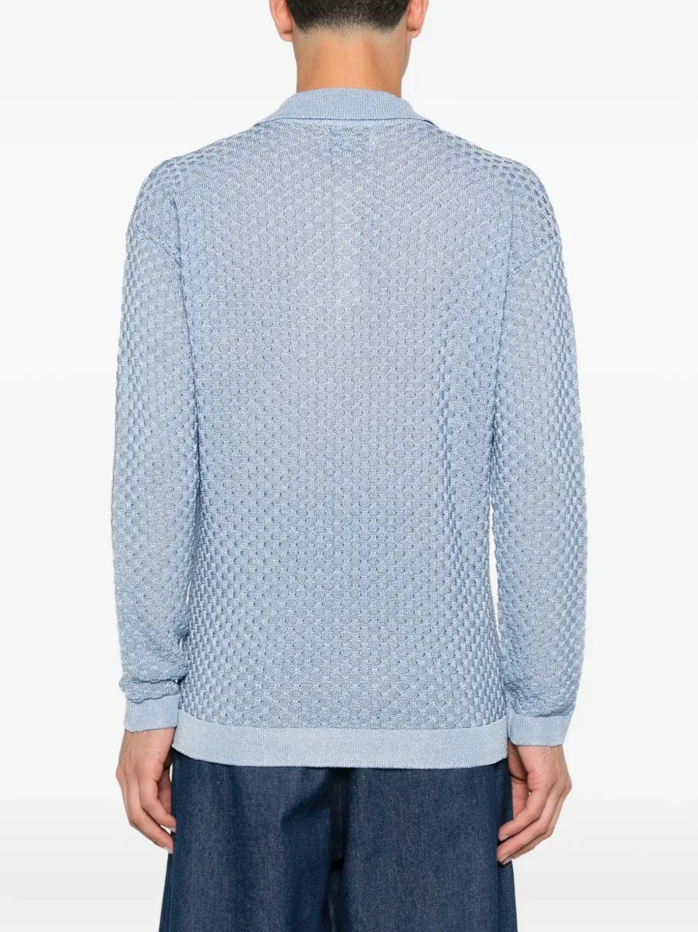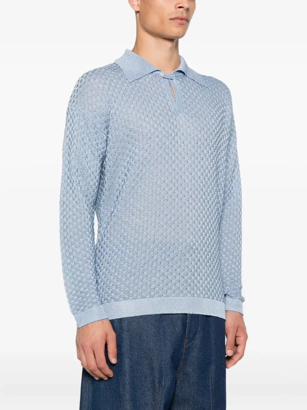 Светло-голубой текстурированный трикотажный свитер с высоким воротом и длинными рукавами, ребристым подолом