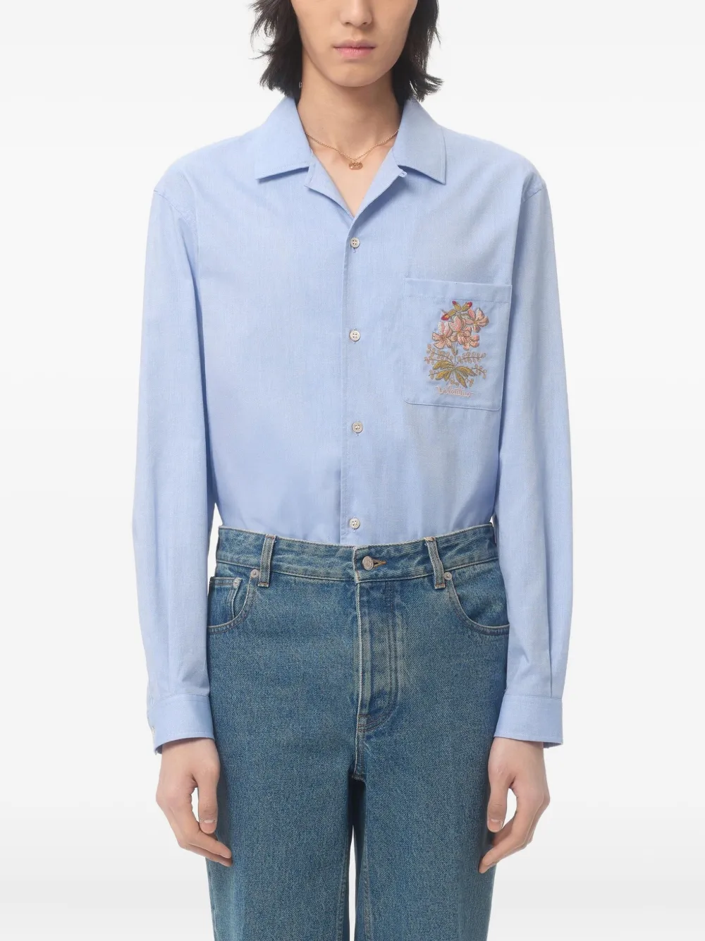 Рубашка с цветочной вышивкой VALENTINO GARAVANI, синий