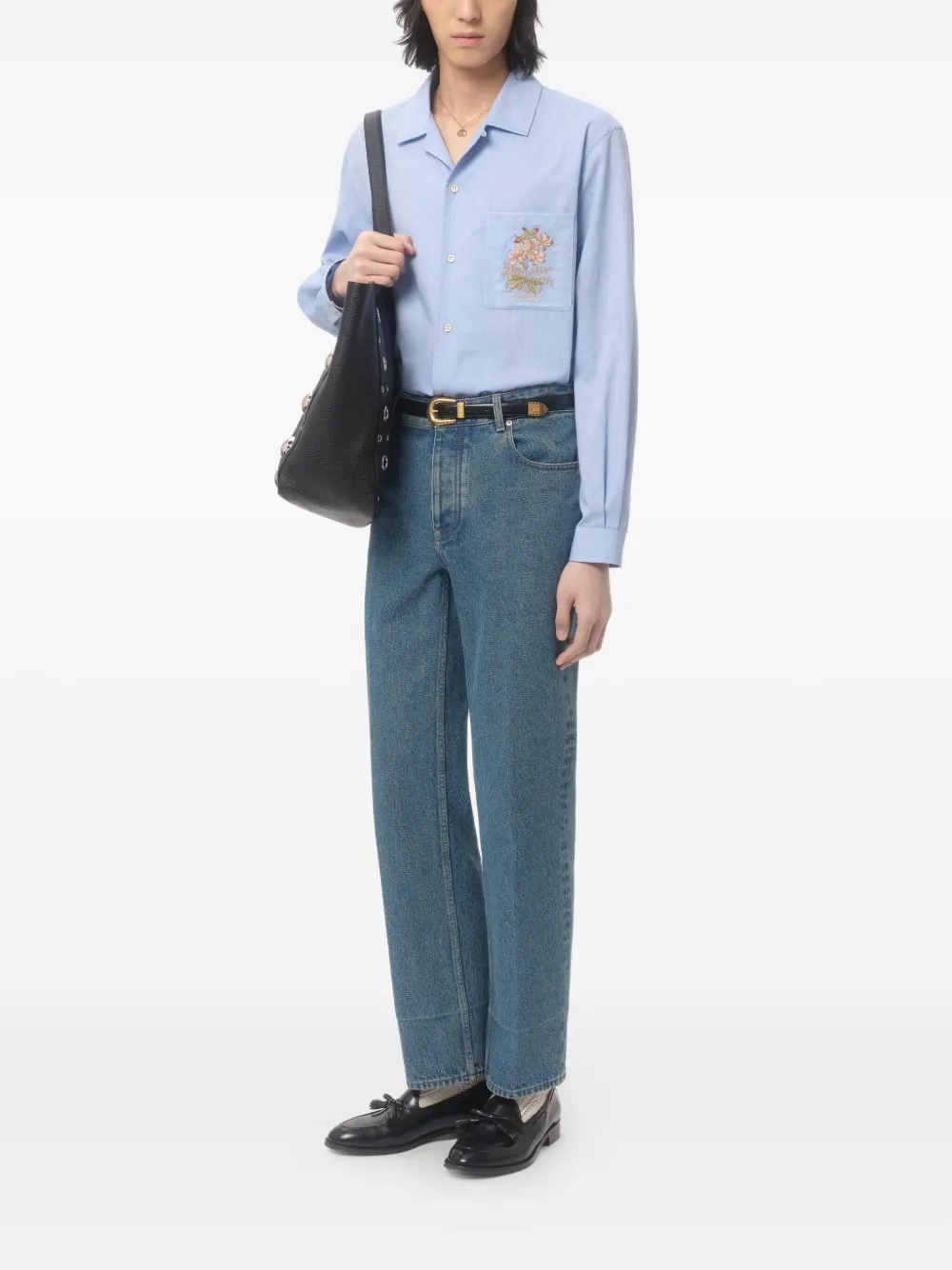 Рубашка с цветочной вышивкой VALENTINO GARAVANI, синий 60 690₽