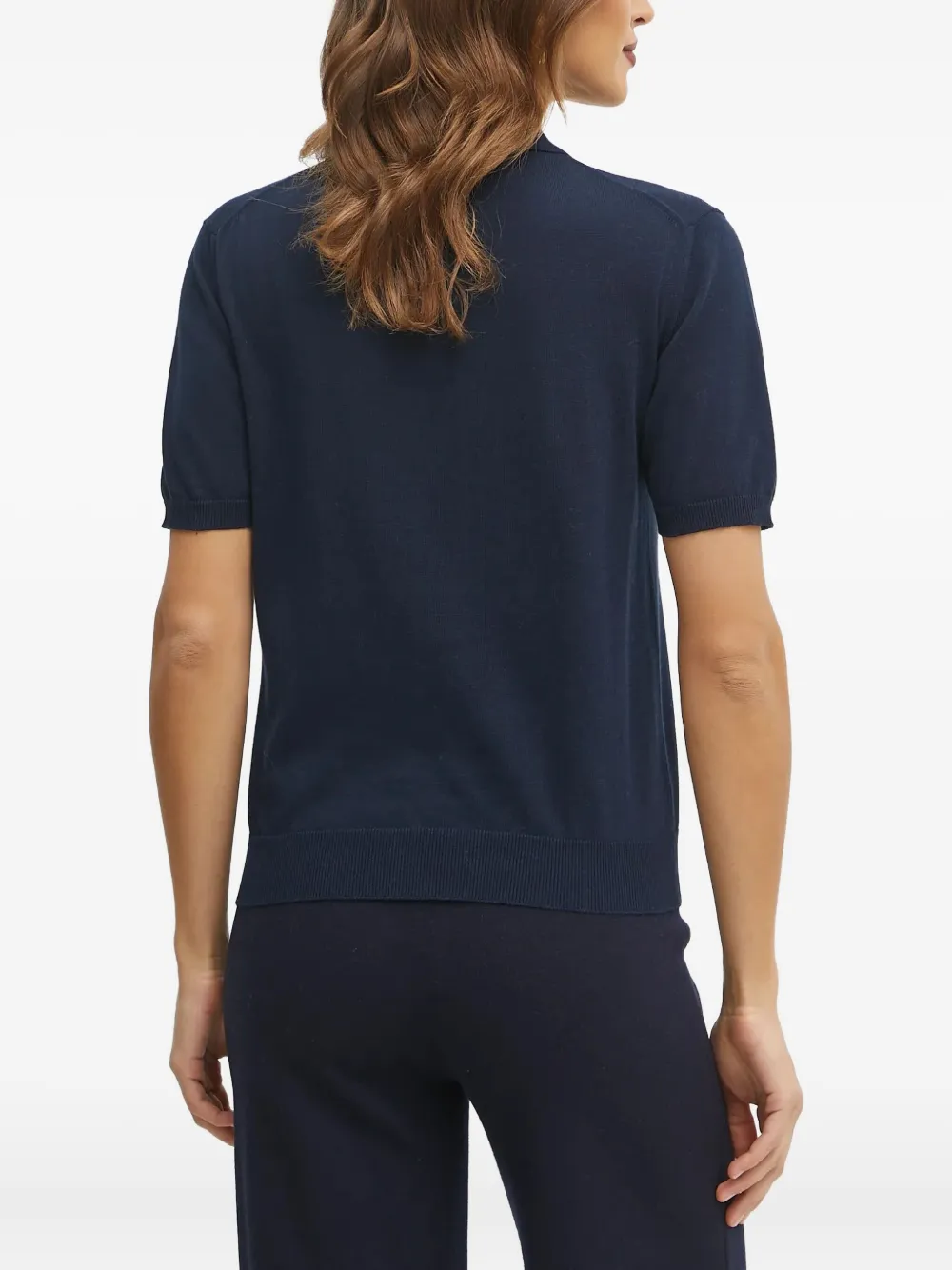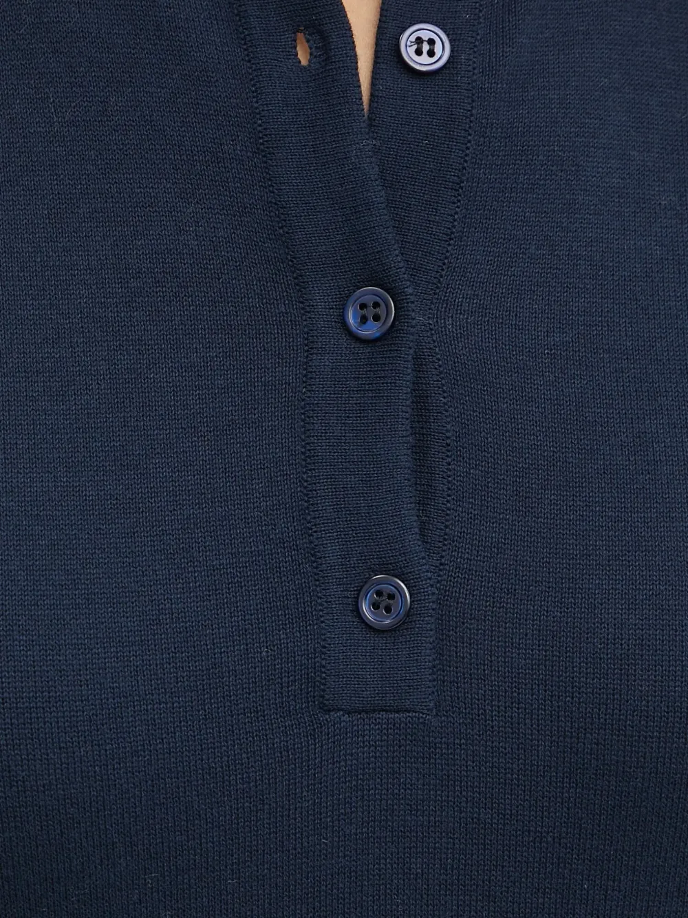 Синий передний воротничок-поло с застежкой на пуговицы и ребристой отделкой