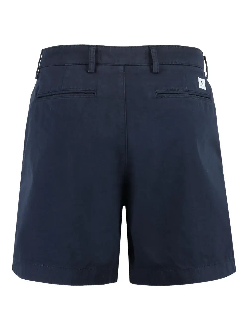 Темно-синие вытачки, застежка на пуговицы, шлевки для ремня, задние карманы