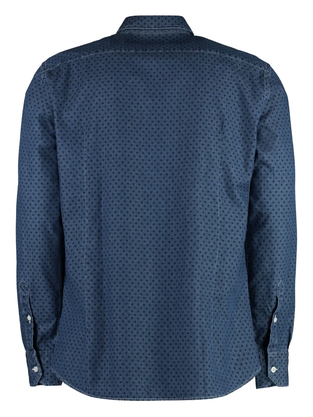 Темно-синий узор в горошек, длинные рукава, манжеты на пуговицах