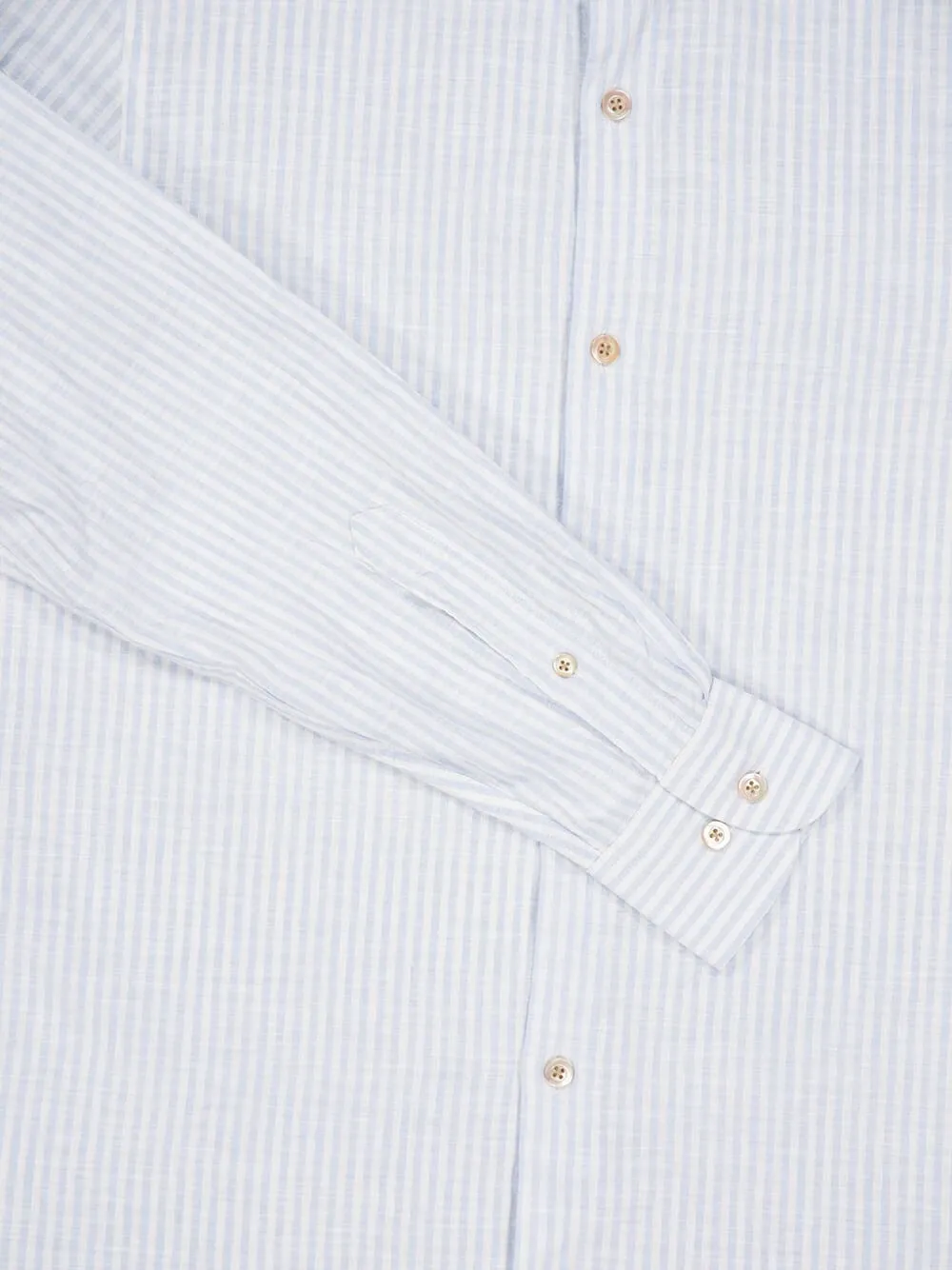 Синие вертикальные полосы, застежка на пуговицы, воротник, длинные рукава, манжеты на пуговицах