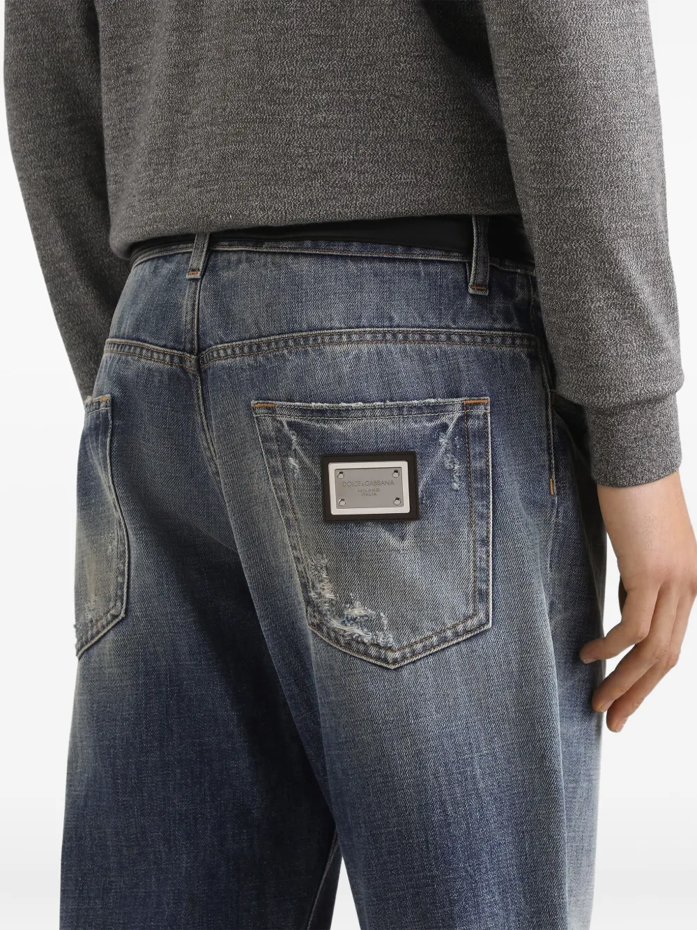 Джинсы с эффектом потертости и логотипом DOLCE & GABBANA, синий
