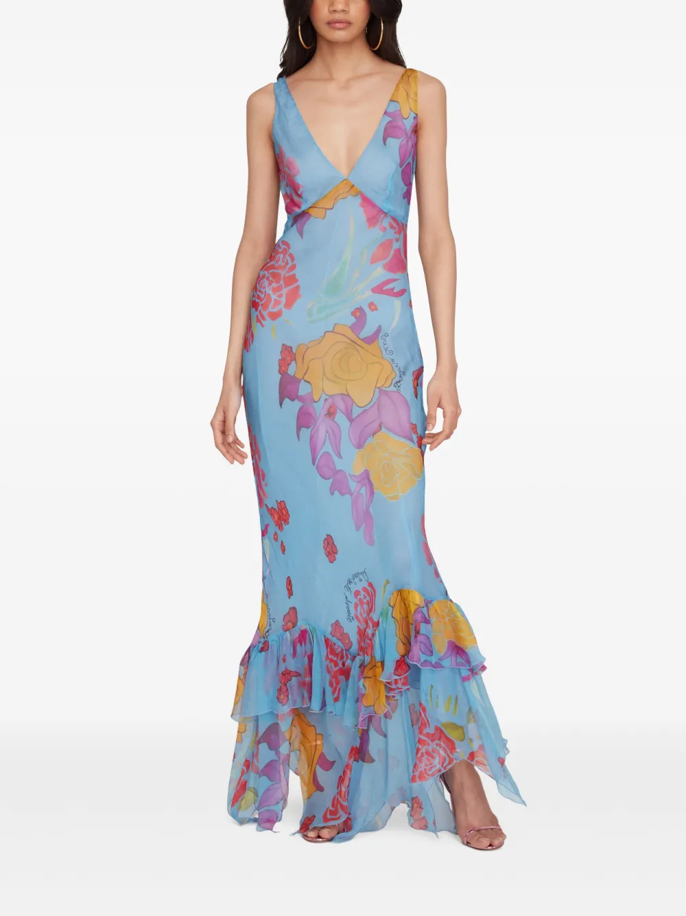Шифоновое платье макси Flores Donde Esteban, синий 60 539₽