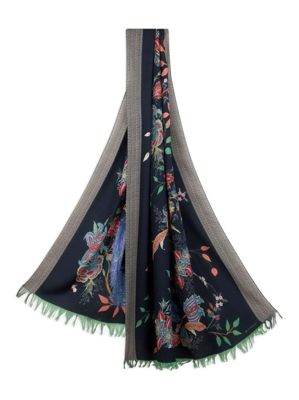 Шерстяной шарф с принтом Peacocks ETRO, синий