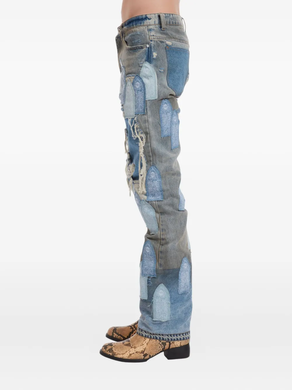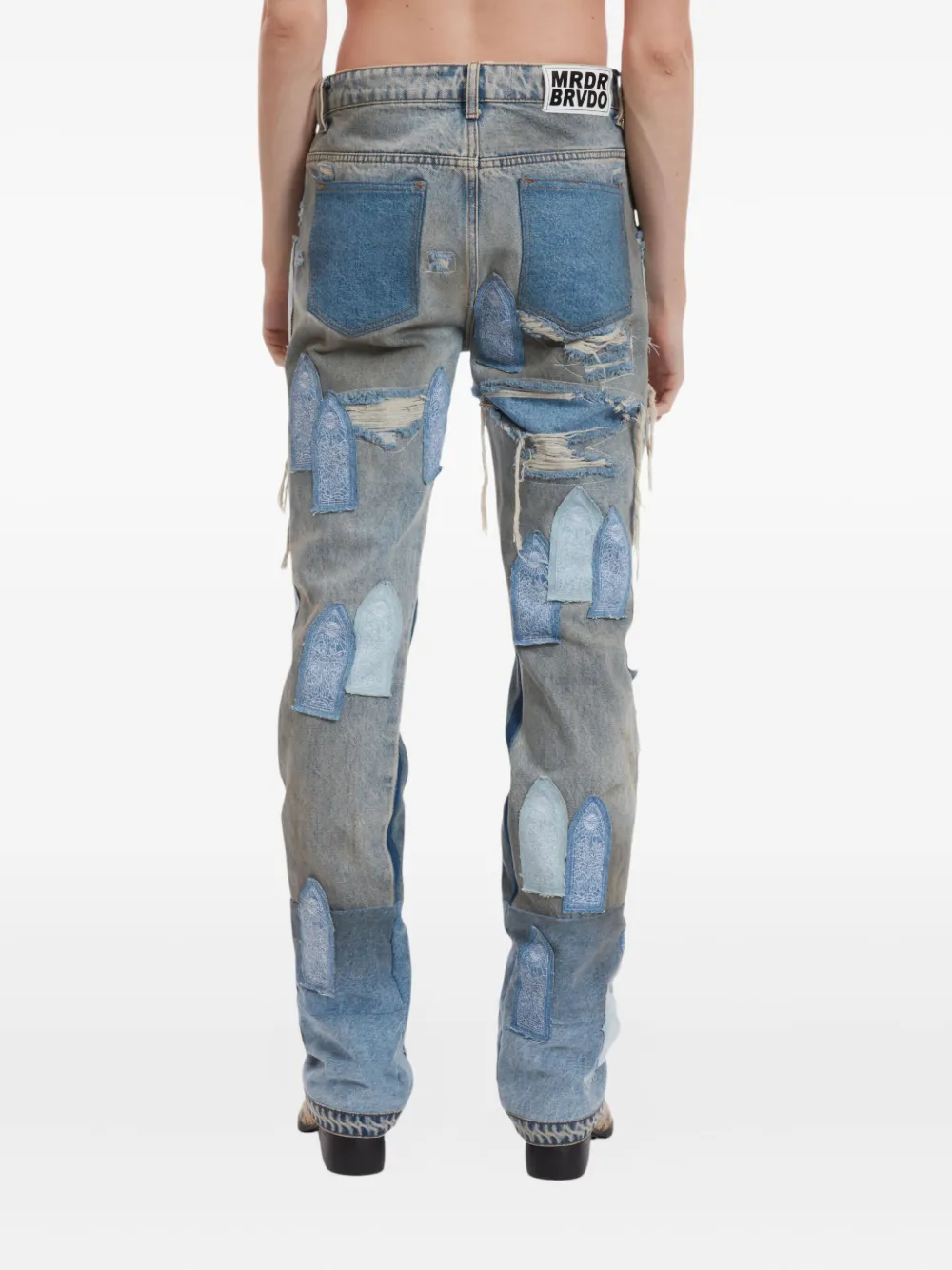 Джинсы с эффектом потертости Who Decides War, синий 82 837₽
