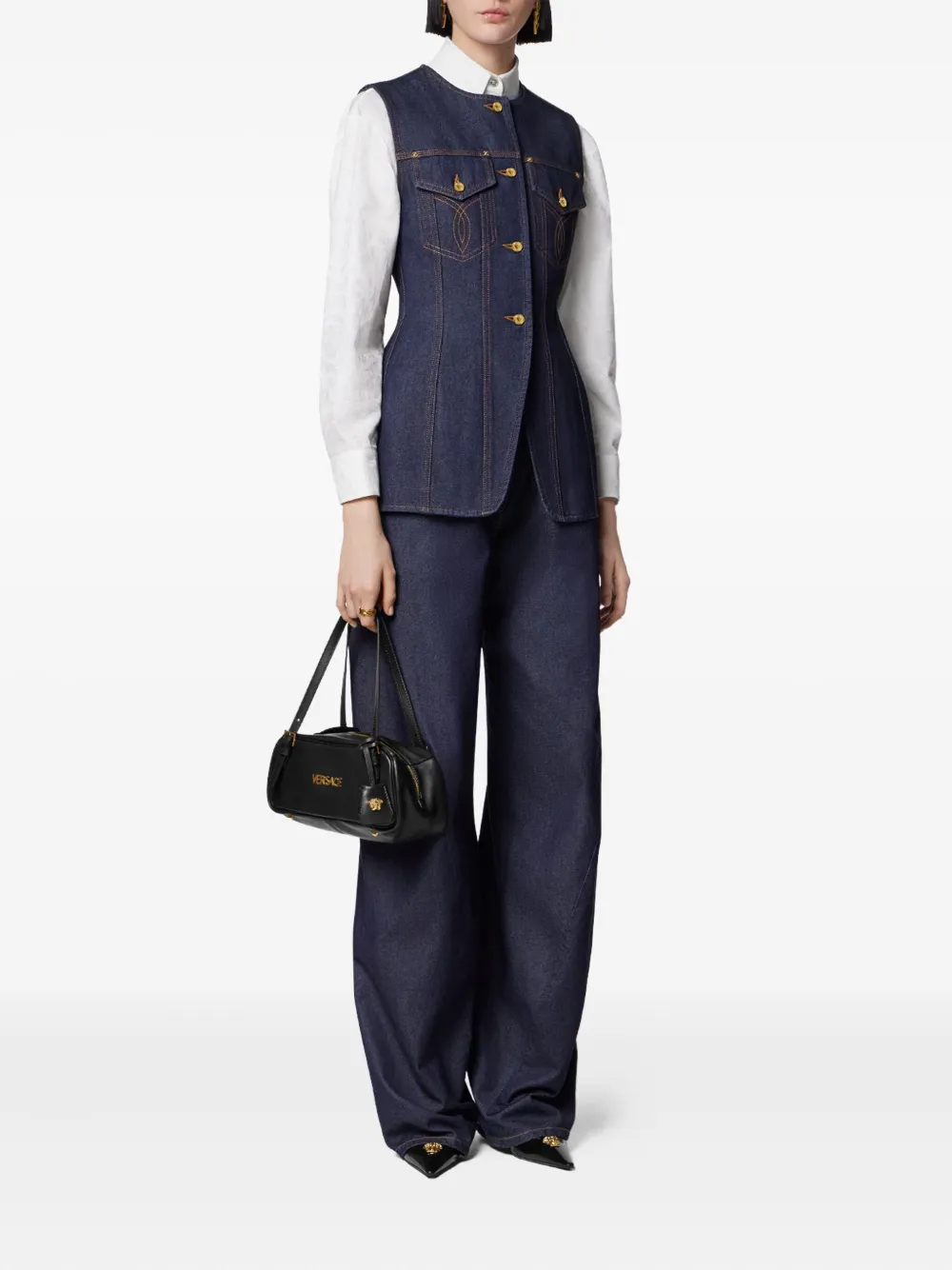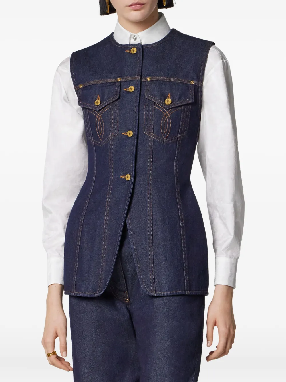 Джинсовый жилет на пуговицах VERSACE, синий
