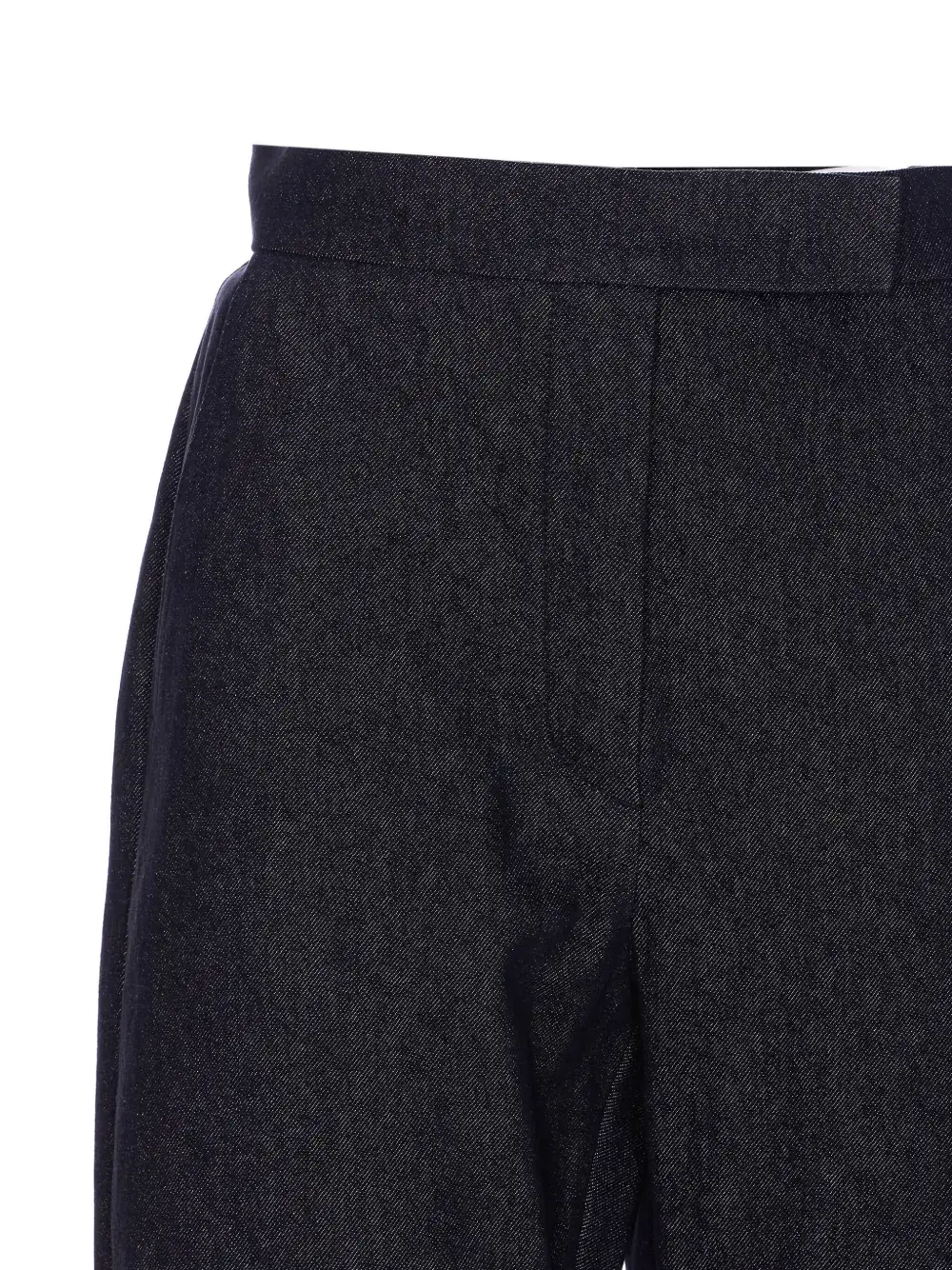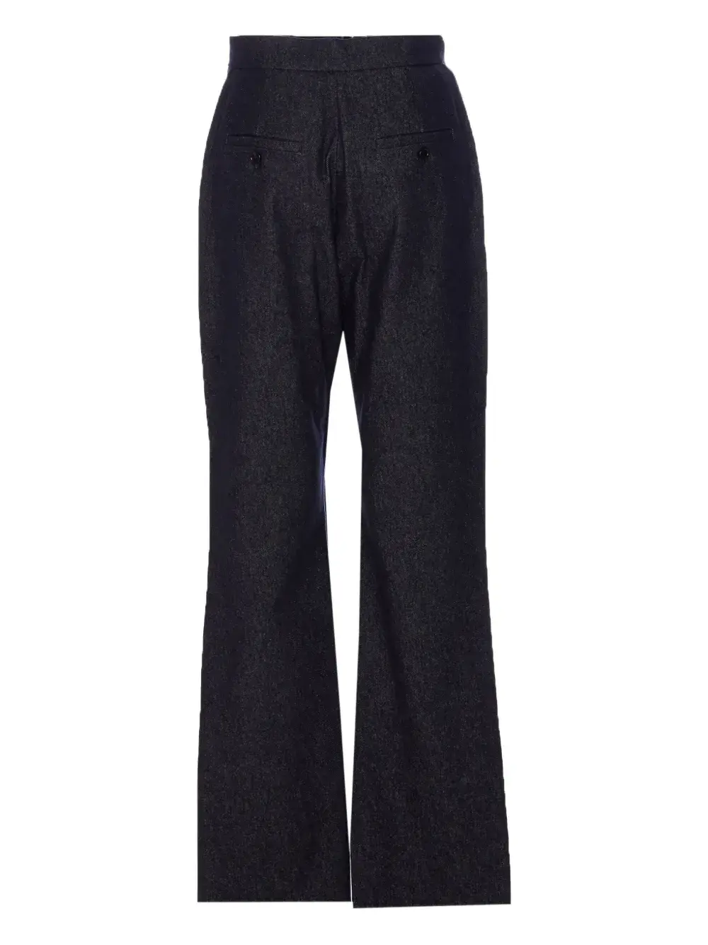 Индигово-синяя потайная застежка спереди, два боковых прорезных кармана, два задних застежки на пуговицы, прорезные карманы, расклешенные