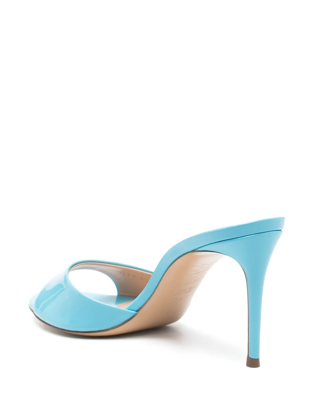 Синие круглые туфли с открытым носком на высоком каблуке-шпильке
