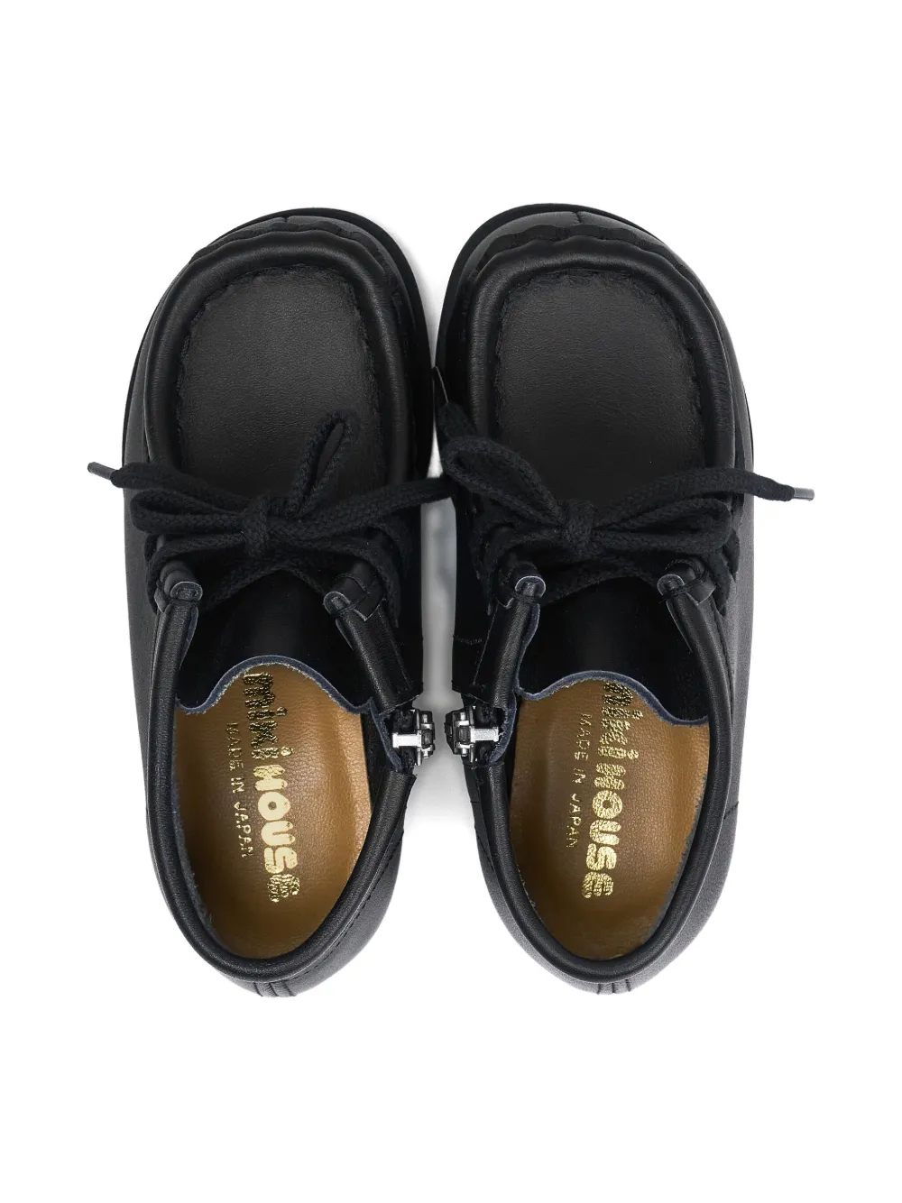 Черная шнуровка спереди, плоская резиновая подошва, фирменная стелька, круглый носок