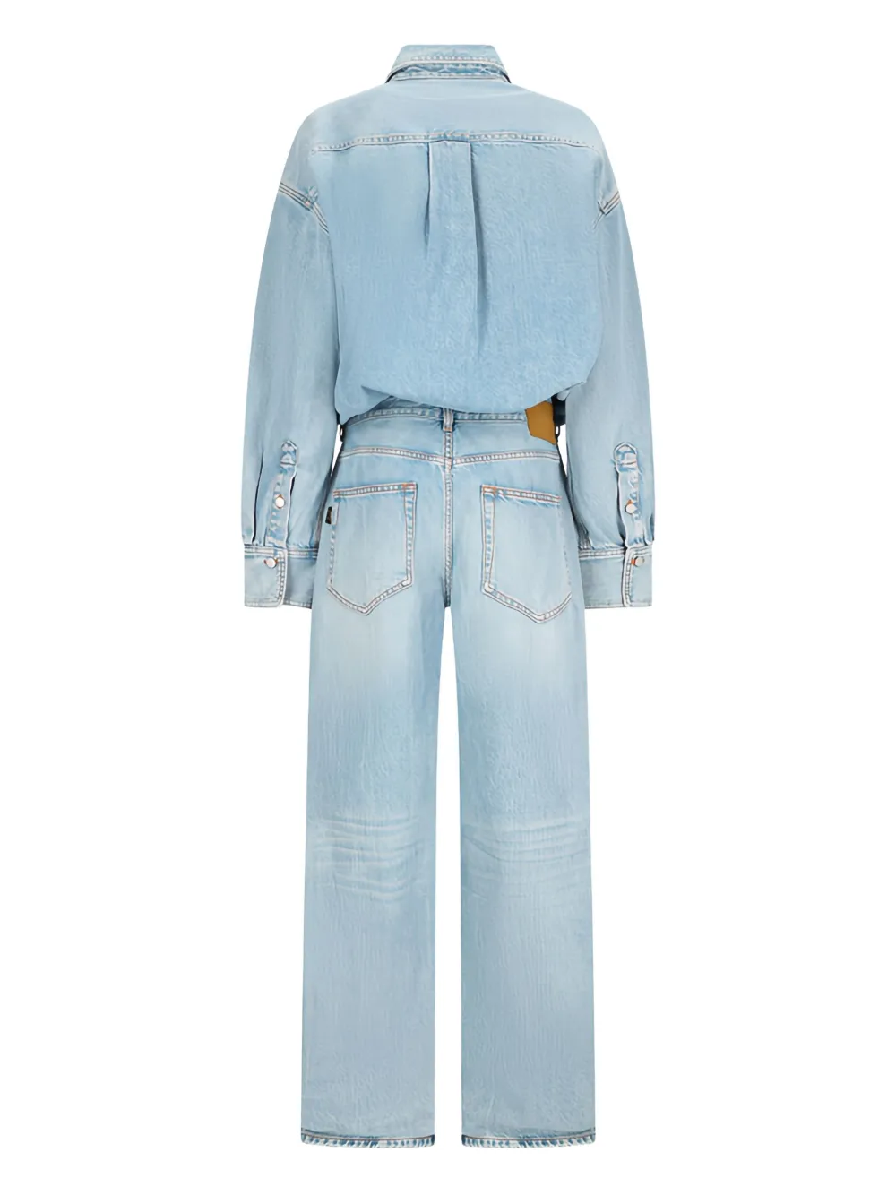 Светло-голубая рубашка с воротником, длинными рукавами, застежкой на пуговицы, двумя нагрудными карманами