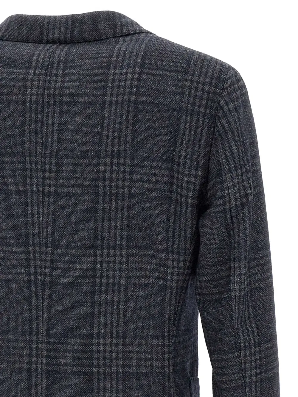 Синяя застежка на пуговицы и молнию спереди, классические лацканы, боковые накладные карманы, длинные рукава