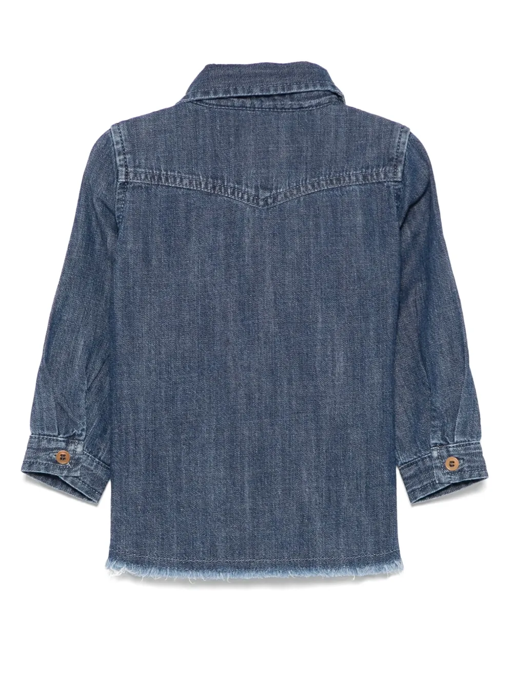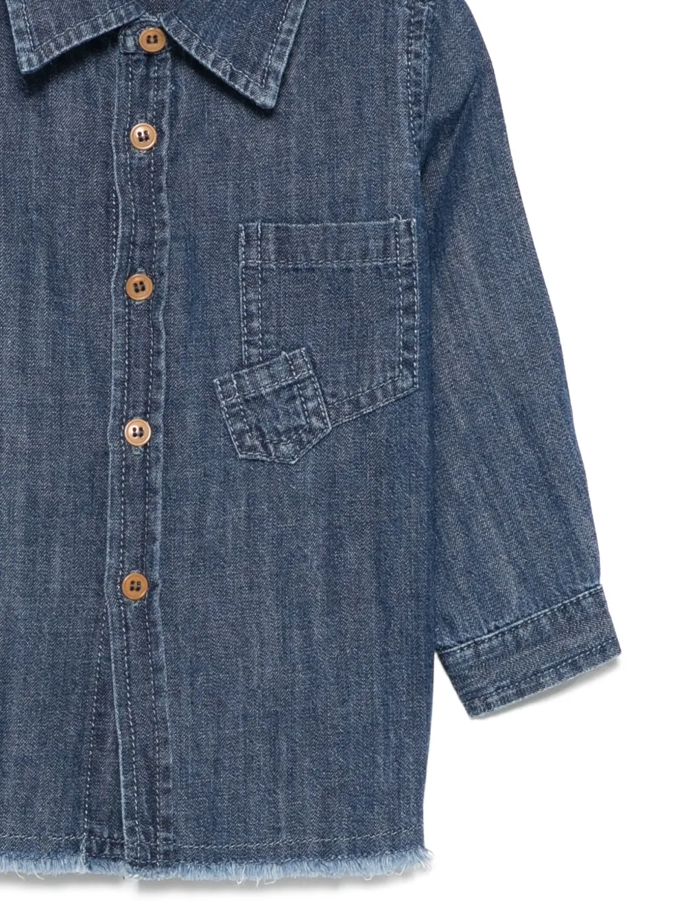 Застежка на пуговицы спереди, нагрудный накладной карман, манжеты на пуговицах, необработанный подол