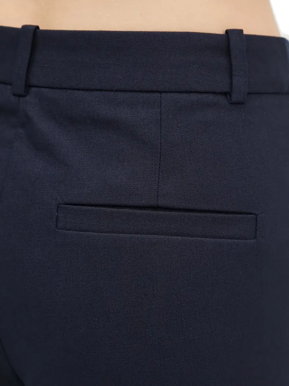 Темно-синие застежки на молнию и пуговицы, прорезные карманы