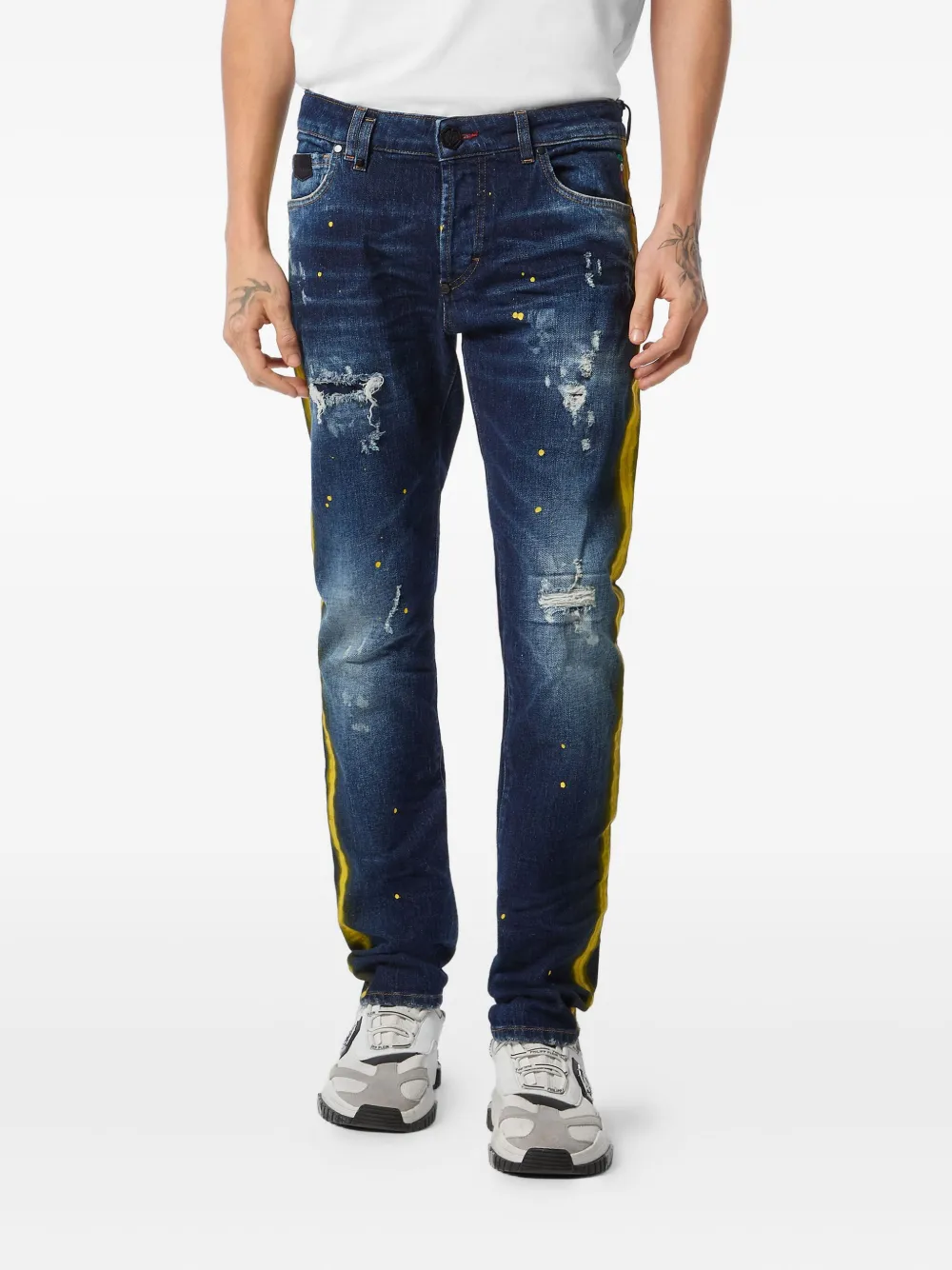 Джинсы с эффектом разбрызганной краски Philipp Plein, синий