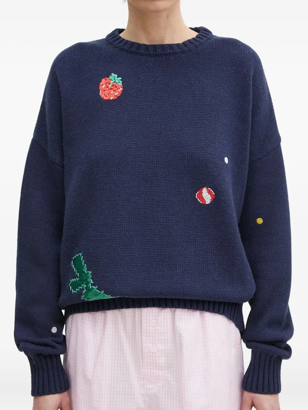 Мотив голубой клубники, мотив шара, мотив кактуса, ребристый край, вышитые детали