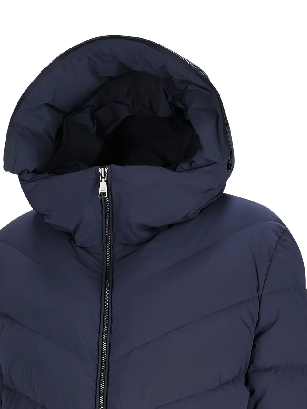 Темно-синий стеганый дизайн, классический капюшон, застежка-молния, логотип