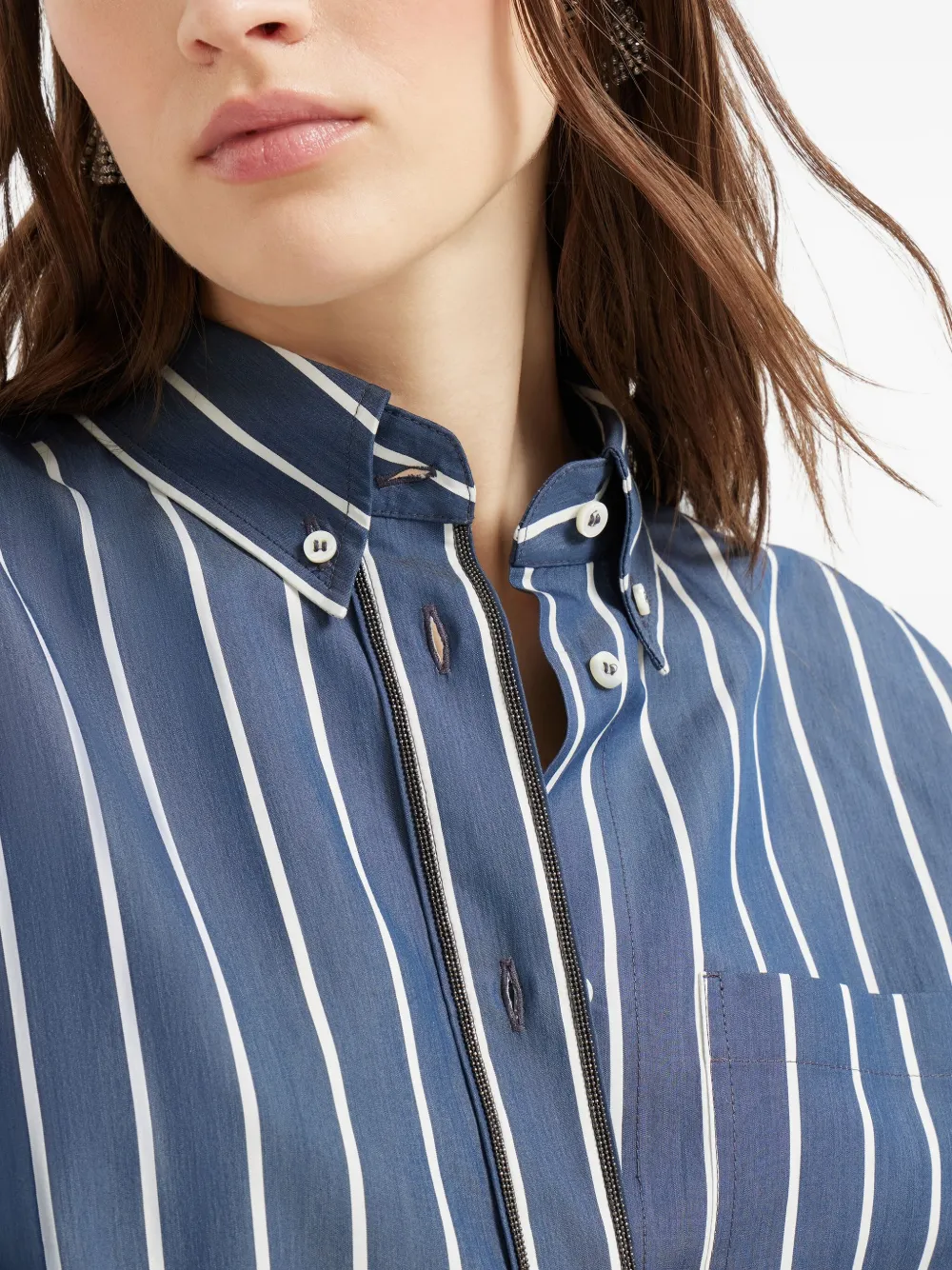Полосатая поплиновая рубашка Brunello Cucinelli, синий