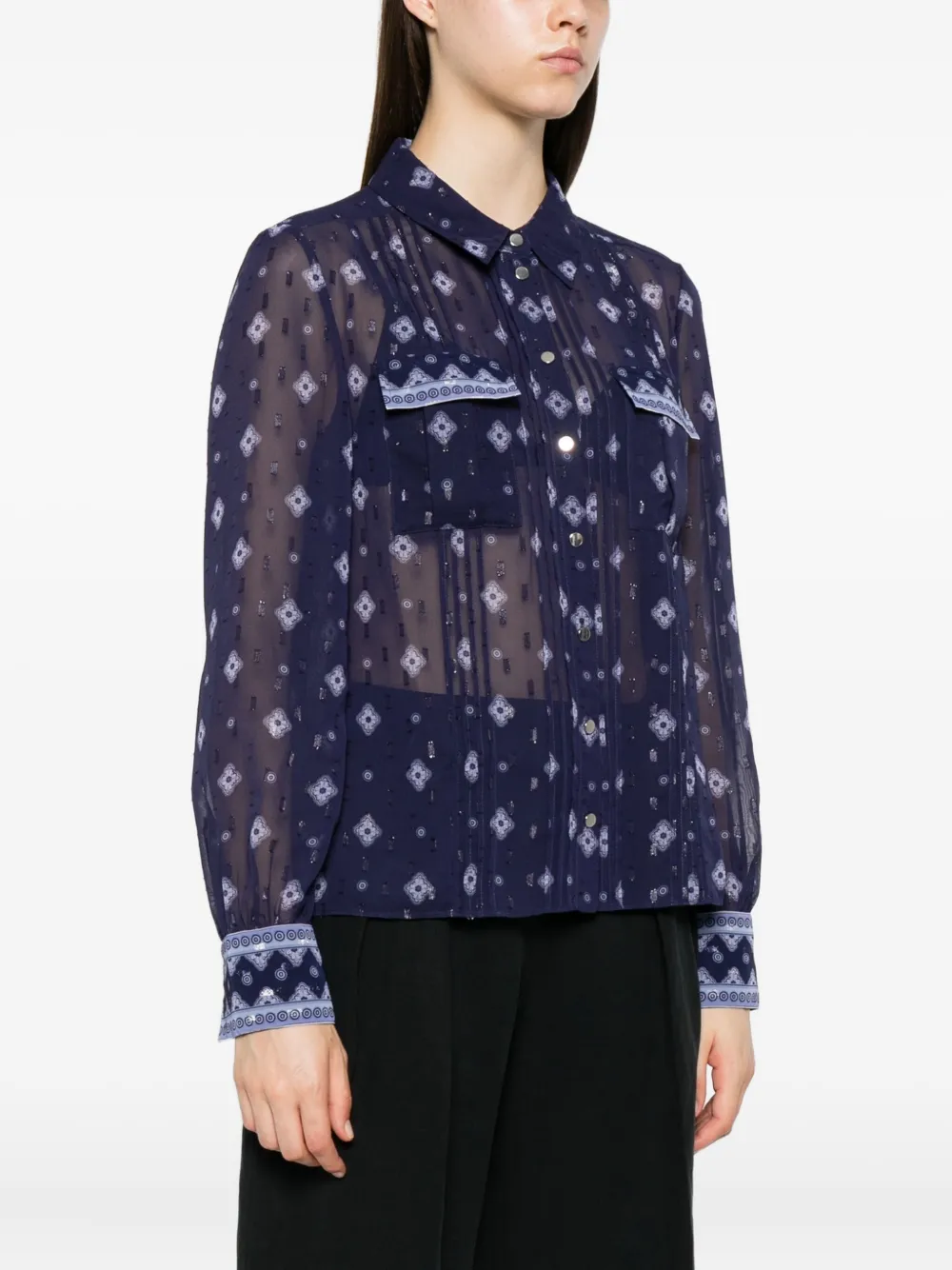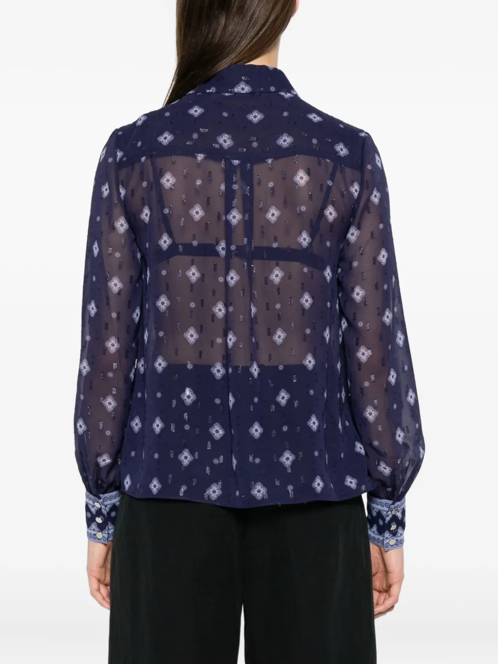 Блузка из шифона с узором Self-Portrait, синий