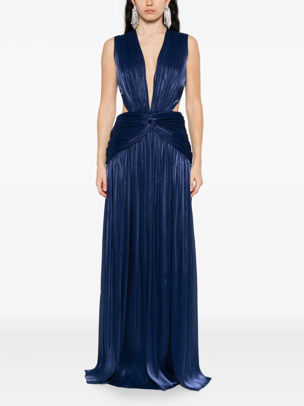 Платье макси Silla с плиссировкой и воротником-хомутиком Costarellos, синий 105 587₽