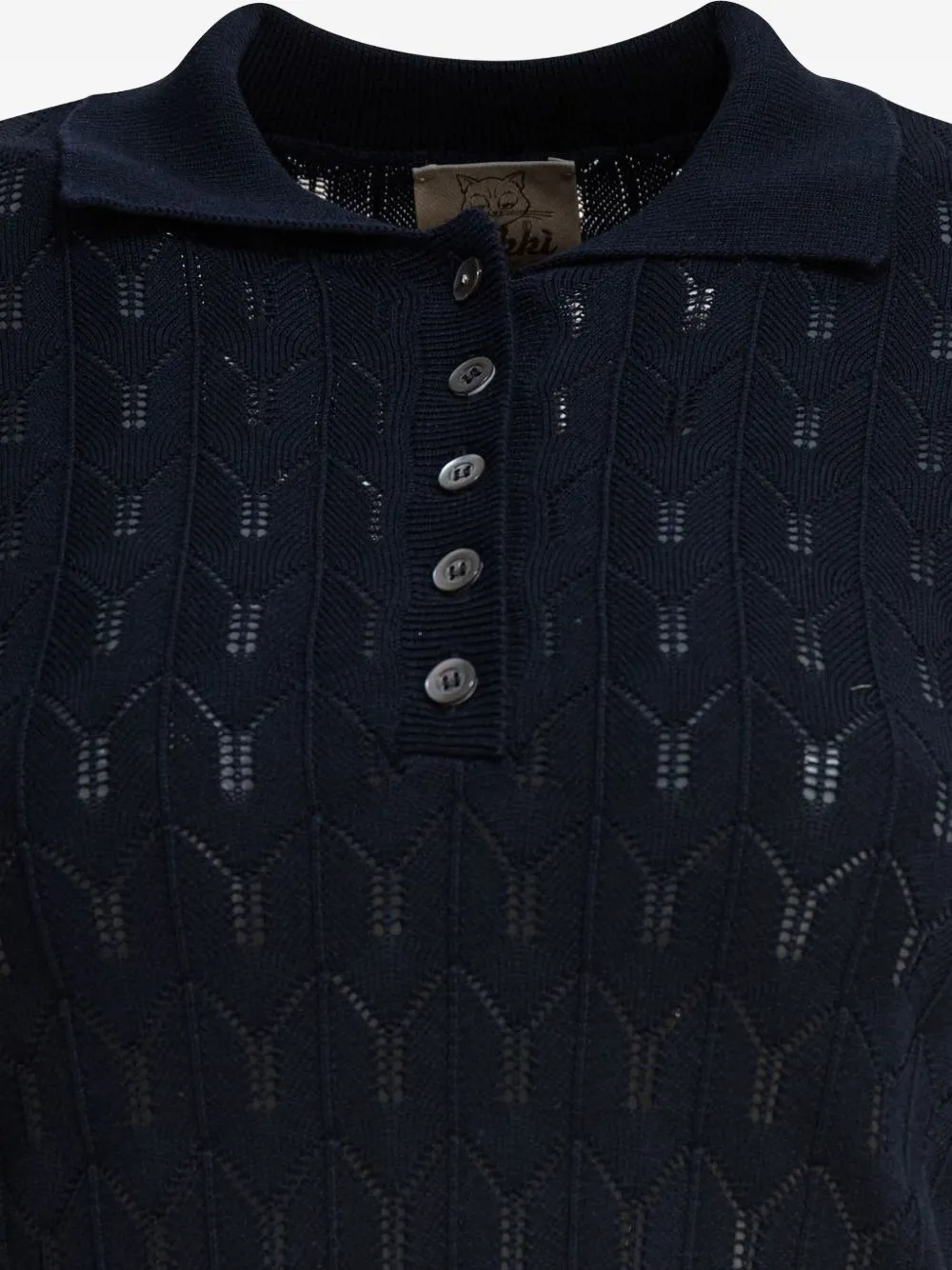 Темно-синяя трикотажная ткань с короткими рукавами и планкой на пуговицах