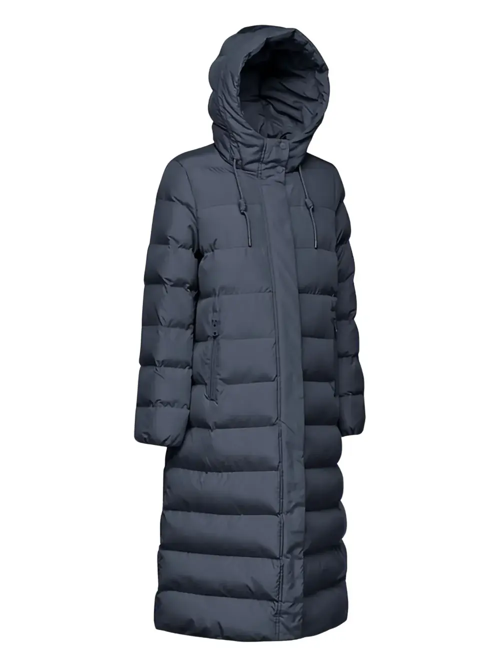Синий стеганый дизайн, капюшон, застежка-молния, длинные рукава, боковые карманы на молнии