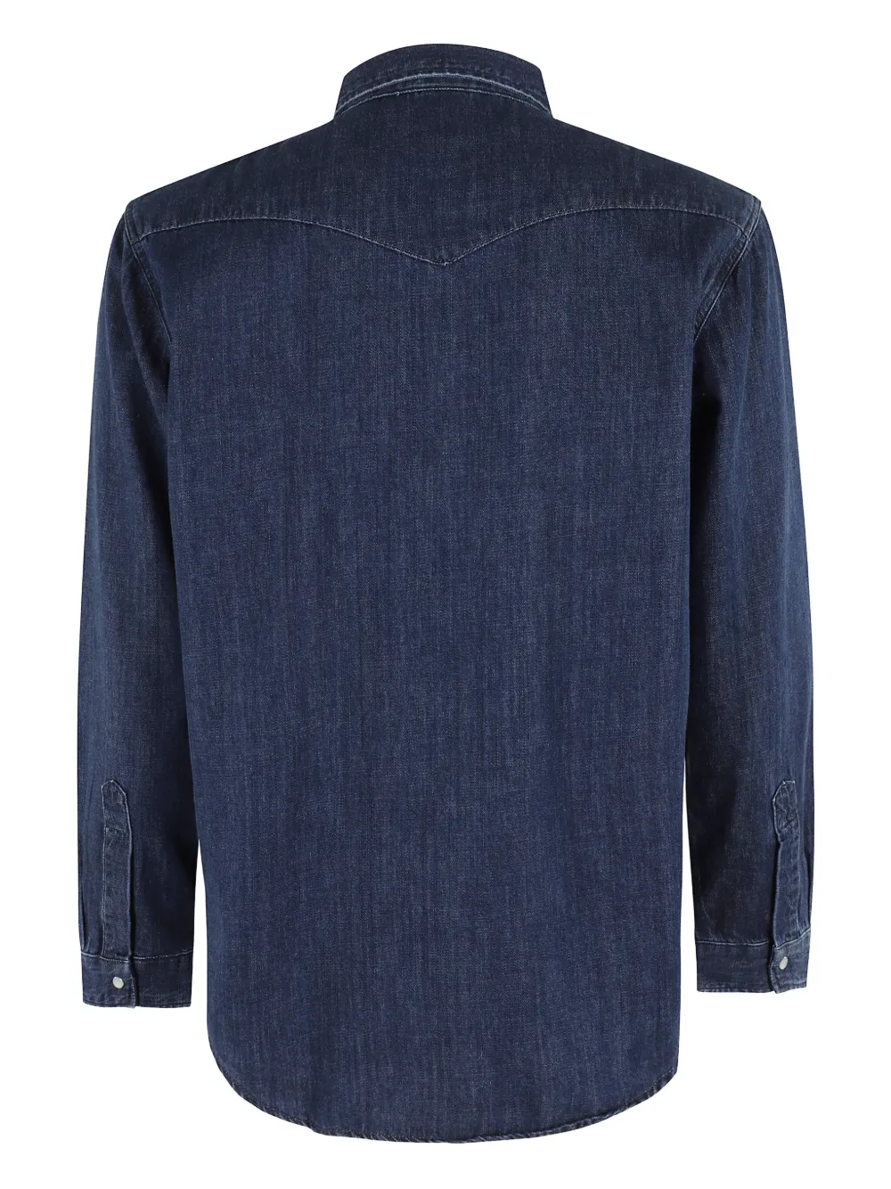 Темно-синяя кокетка, два нагрудных кармана, застежка на пуговицы спереди, длинные рукава