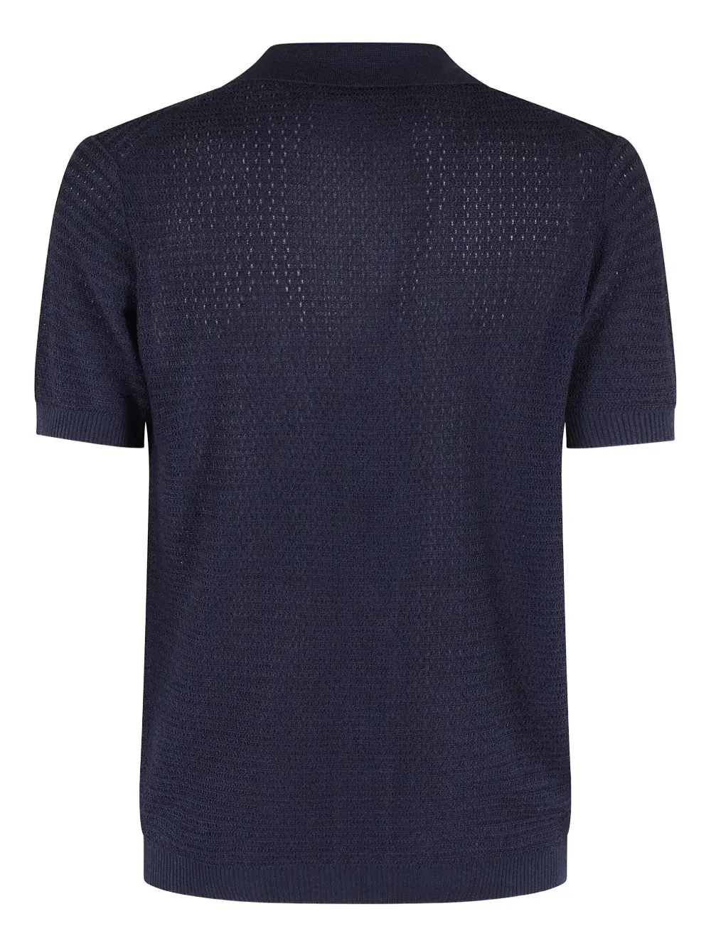 Темно-синяя застежка на пуговицы, трикотажная фактура, короткие рукава