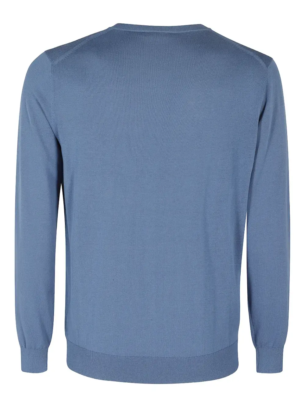 Синий круглый вырез горловины, ребристые манжеты, ребристый подол, длинные рукава