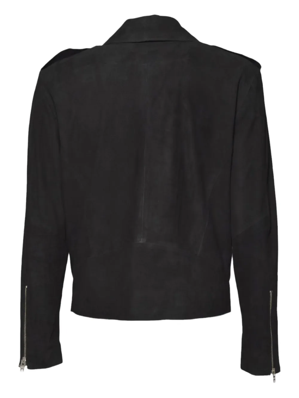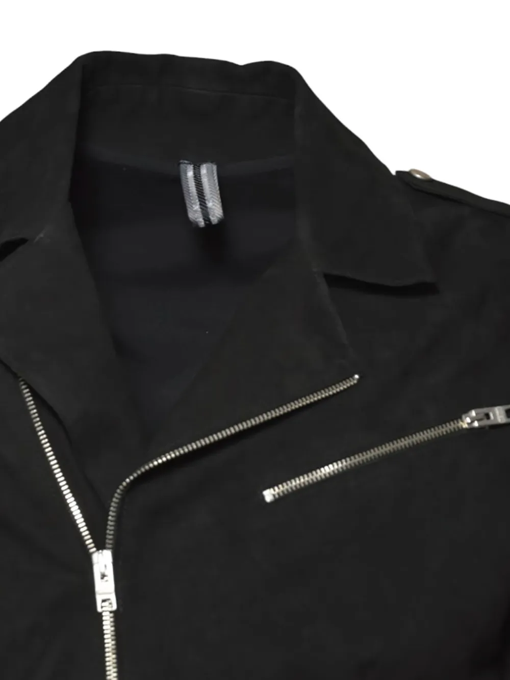 Черная асимметричная застежка-молния, боковые карманы на молнии, эполеты, манжеты на молнии