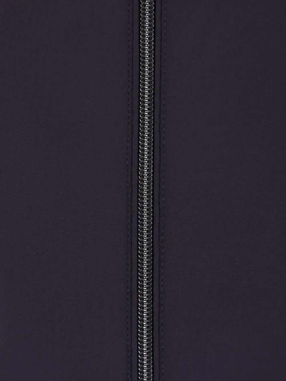 Темно-синяя застежка-молния спереди, два боковых кармана с листочкой, регулируемый капюшон на шнурке