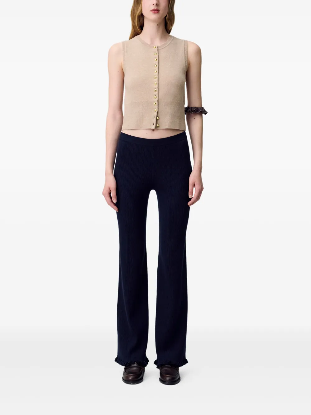 Брюки в рубчик с оборками Claudie Pierlot, синий