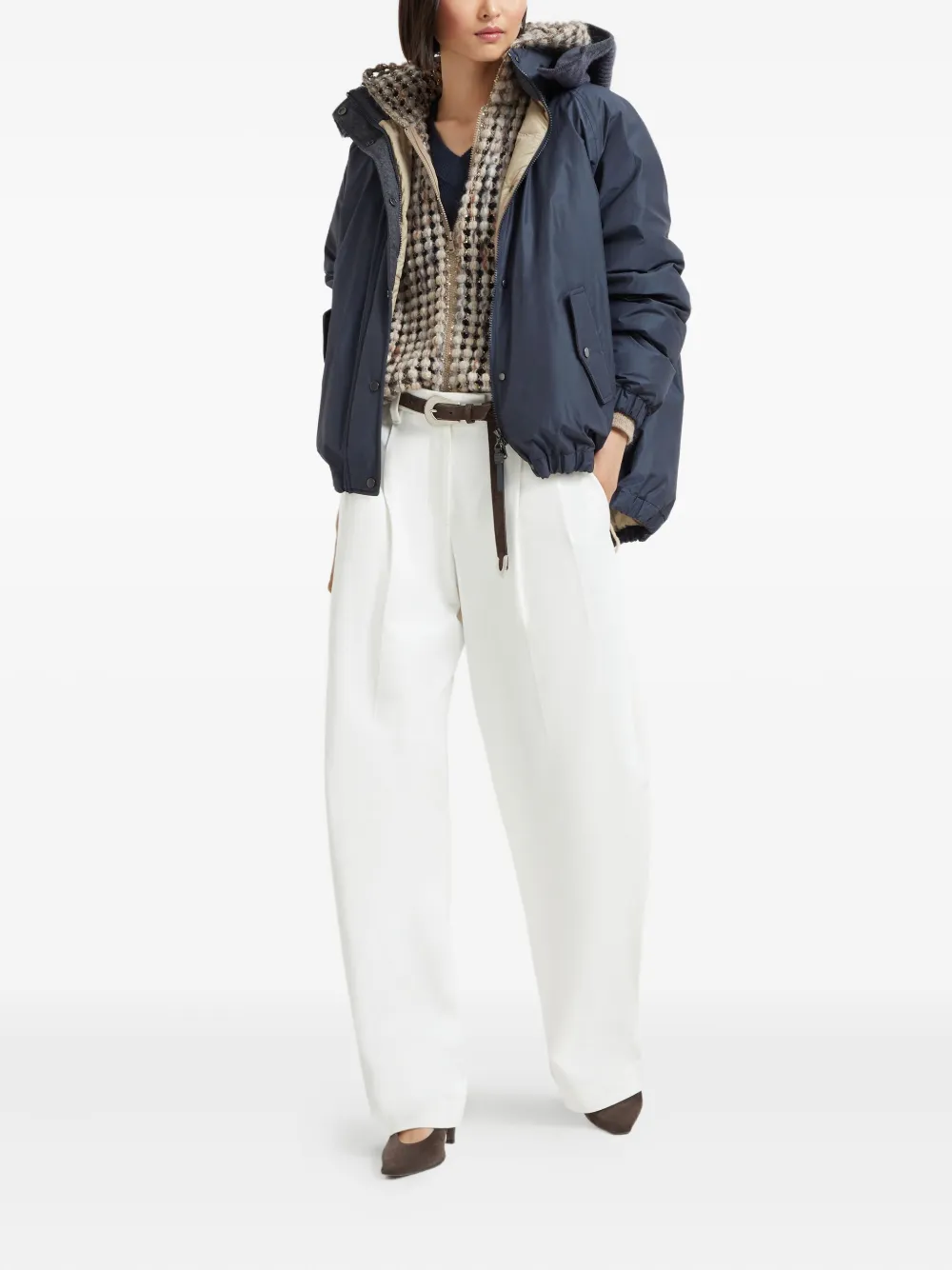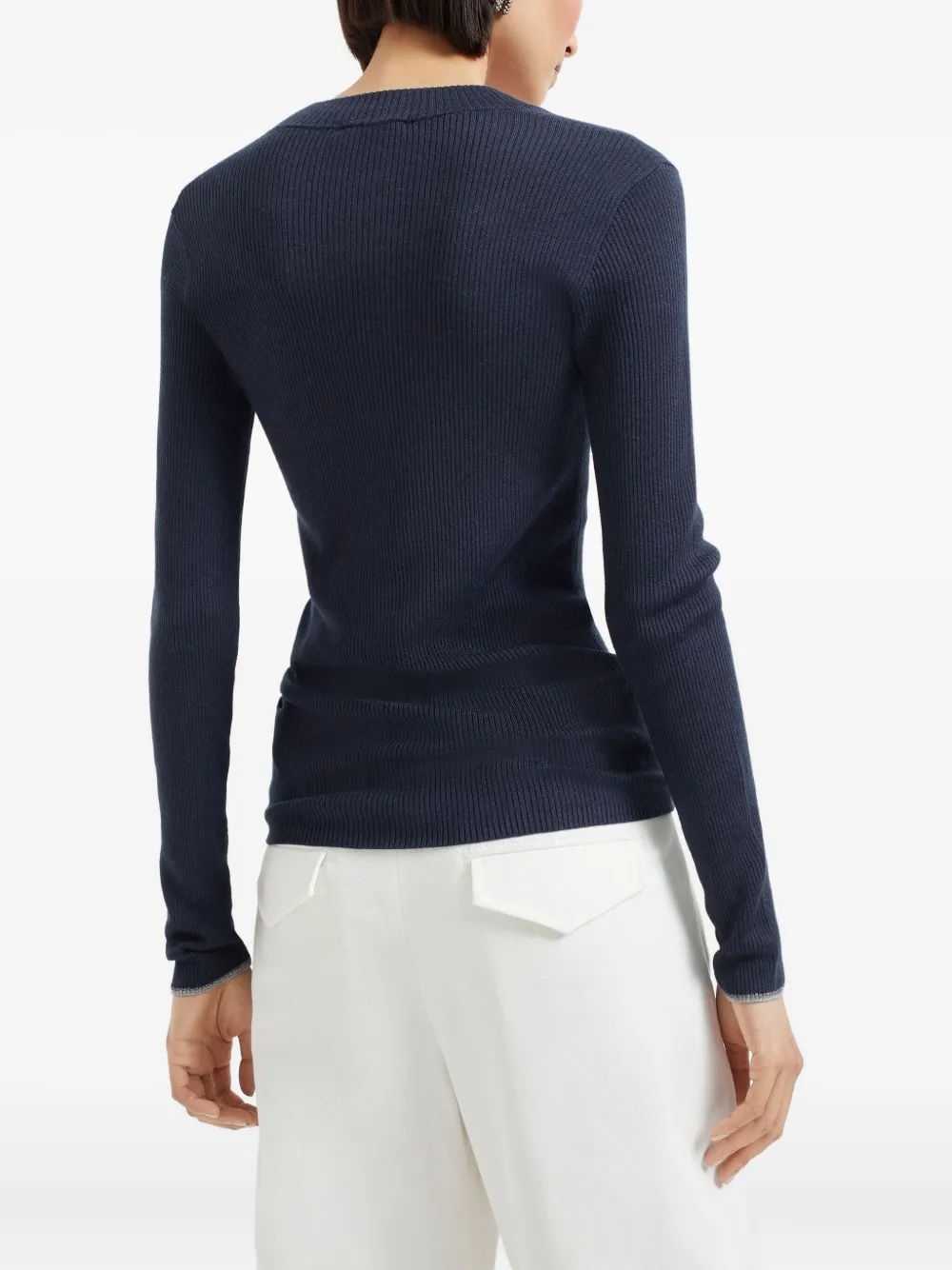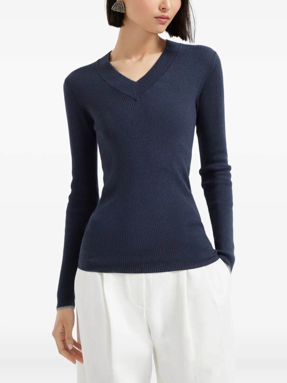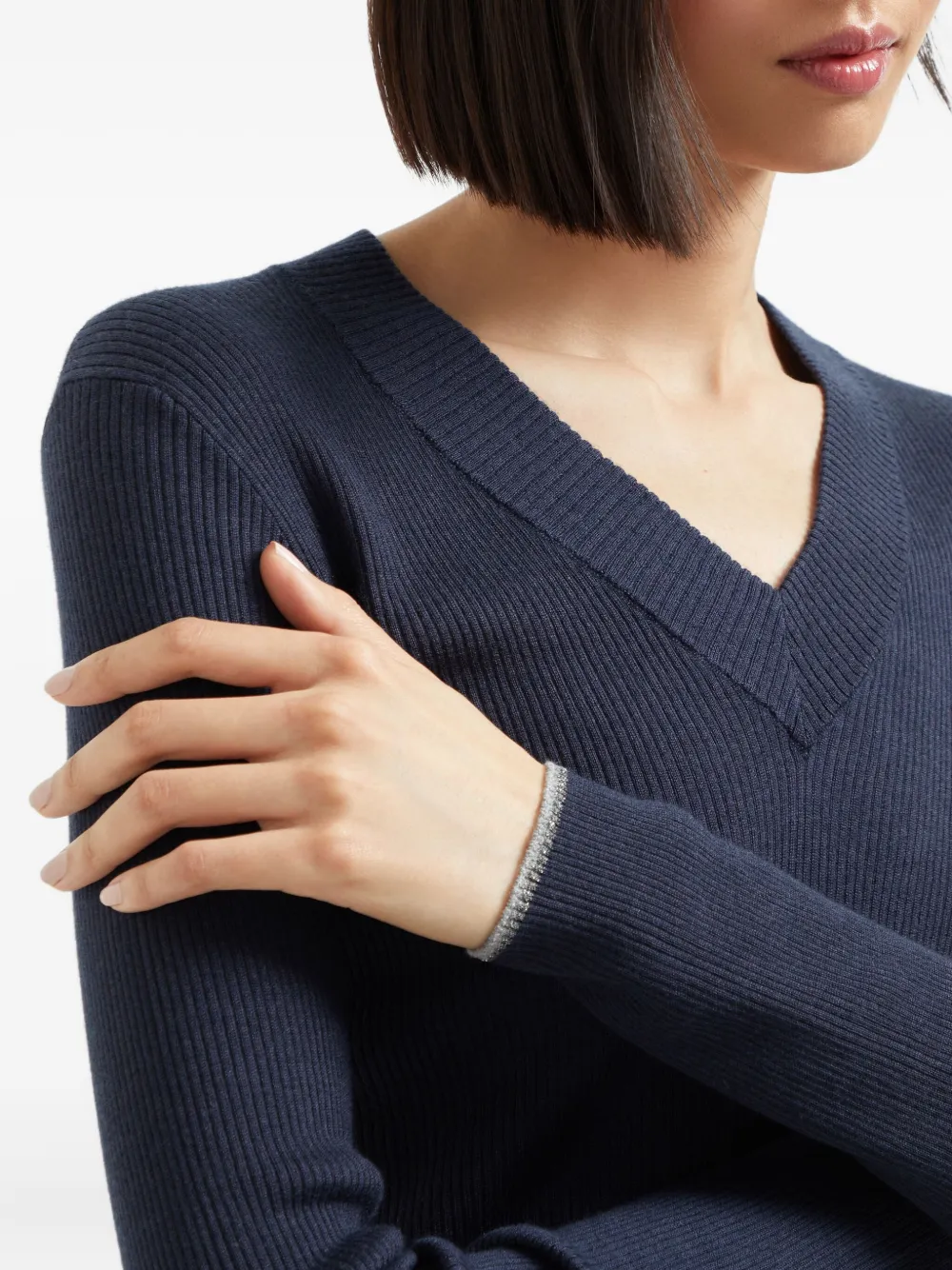 Толстовка в рубчик с v-образным вырезом Brunello Cucinelli, синий
