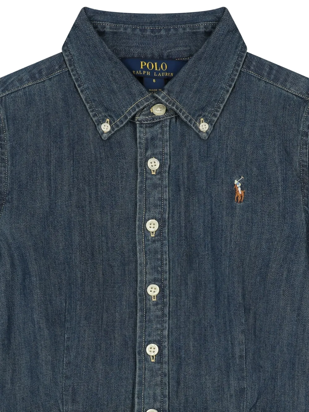 Джинсовое платье-рубашка на пуговицах POLO RALPH LAUREN KIDS, синий